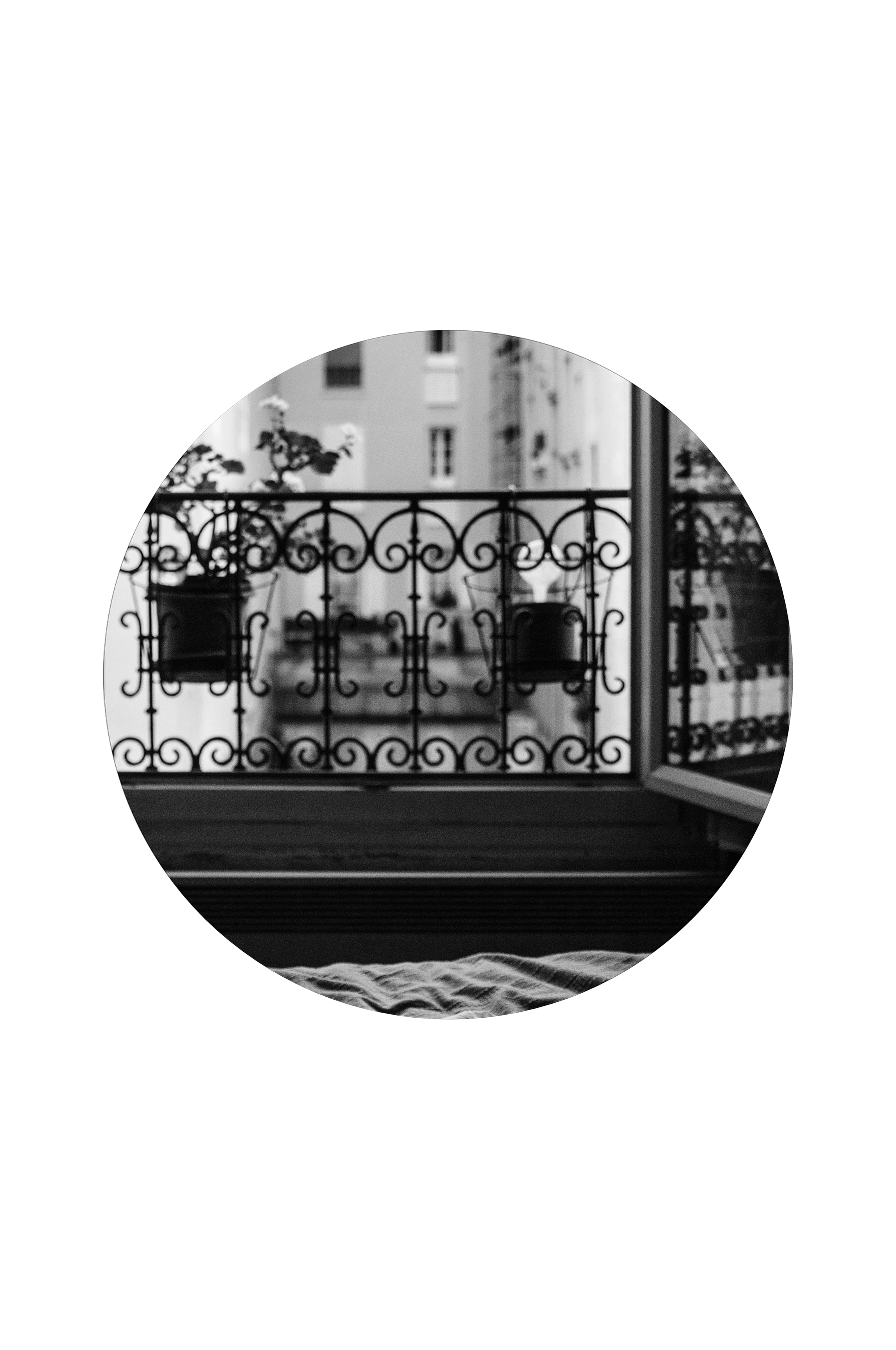 Malerifabrikken Love in Paris -taulu. Painettu pyöreälle MDF-levylle. Seinälle ripustettuna levyn profiili saa aikaan vaikutelman, että taulun etuosa "leijuu" noin 0,5 cm irrallaan seinästä.