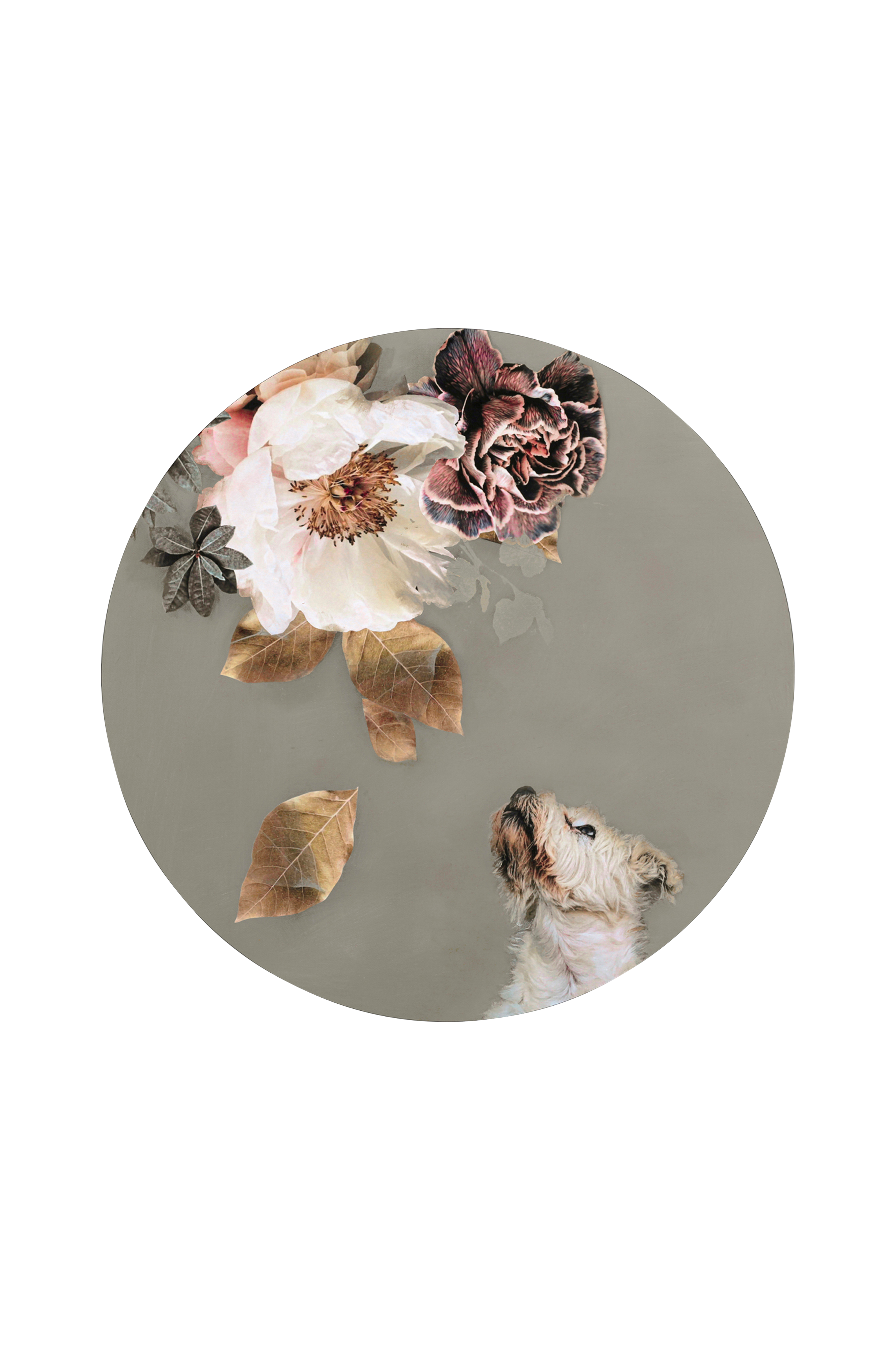 Malerifabrikken taulu. Painettu pyöreälle MDF-levylle. Seinälle ripustettuna levyn profiili saa aikaan vaikutelman, että taulun etuosa "leijuu" noin 0,5 cm irrallaan seinästä.