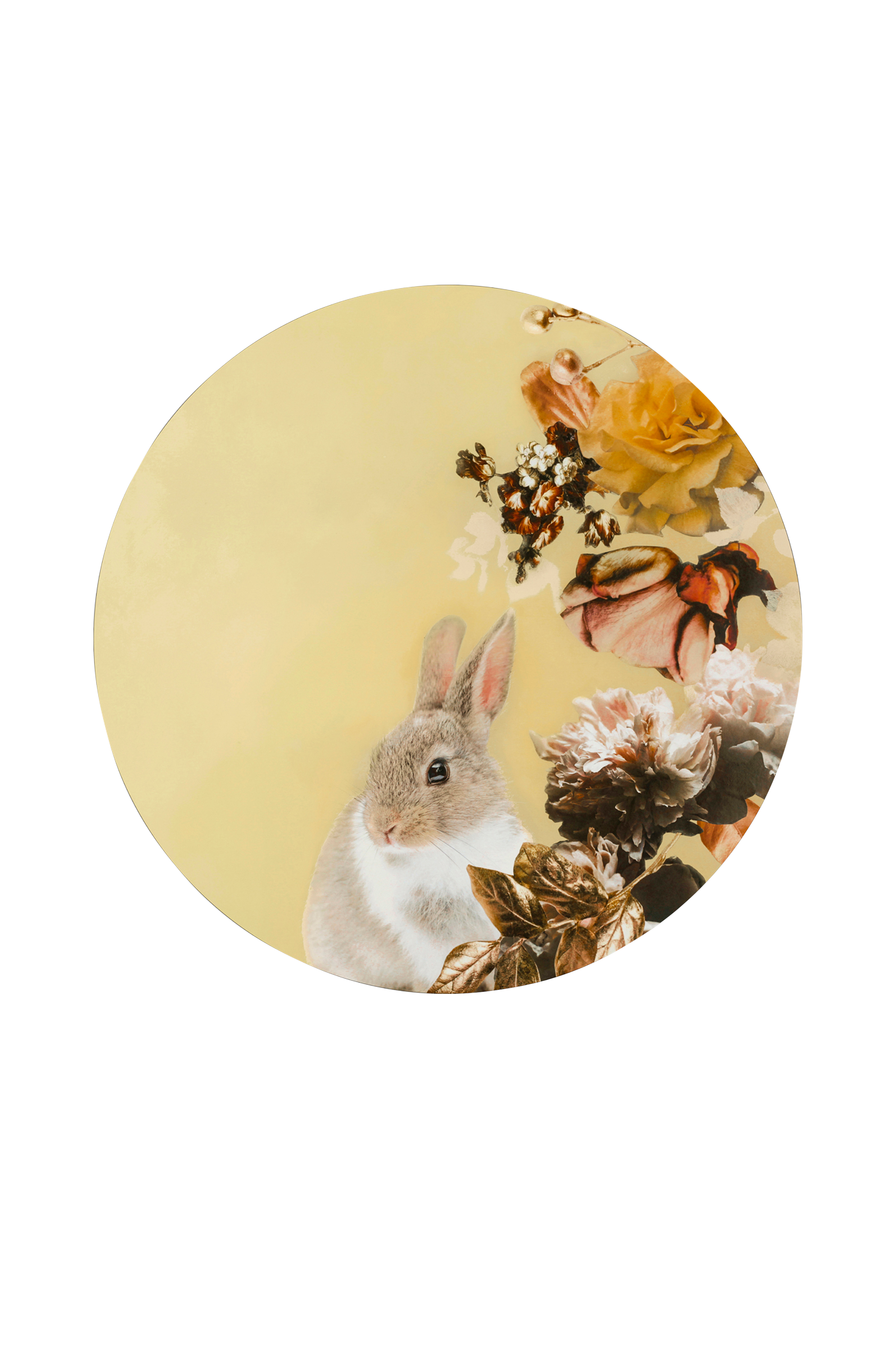 Malerifabrikken taulu. Painettu pyöreälle MDF-levylle. Seinälle ripustettuna levyn profiili saa aikaan vaikutelman, että taulun etuosa "leijuu" noin 0,5 cm irrallaan seinästä.