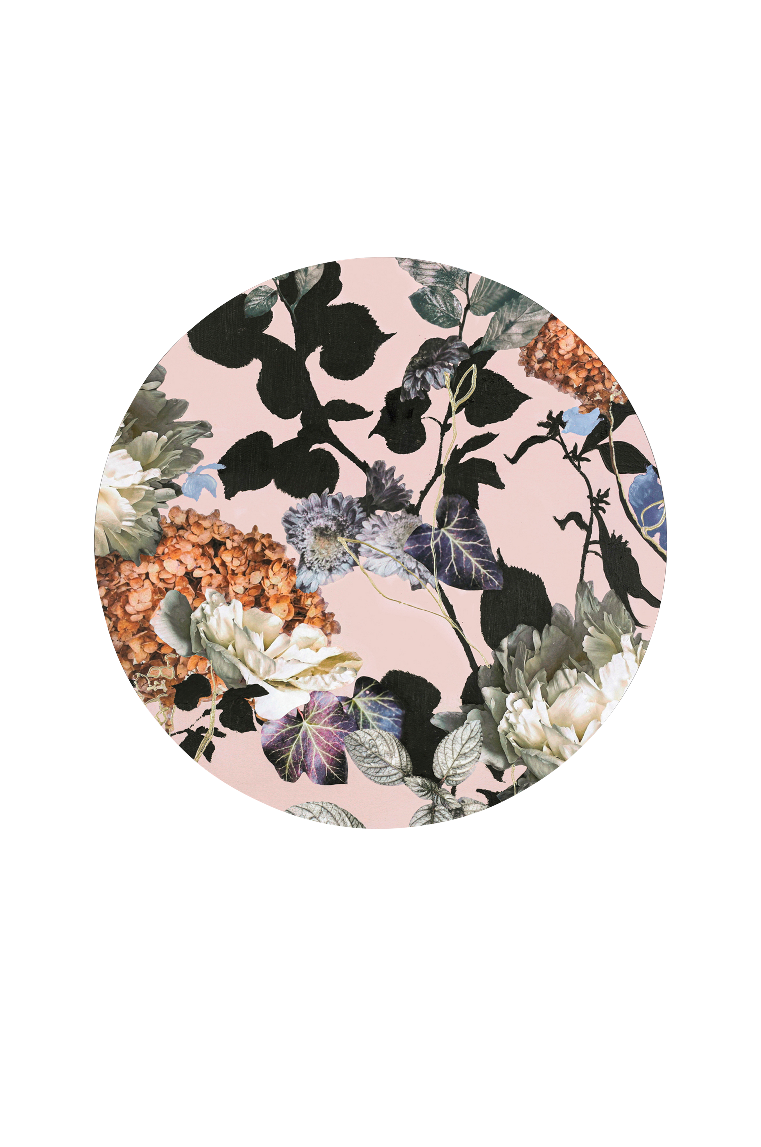 Malerifabrikken taulu. Painettu pyöreälle MDF-levylle. Seinälle ripustettuna levyn profiili saa aikaan vaikutelman, että taulun etuosa "leijuu" noin 0,5 cm irrallaan seinästä.