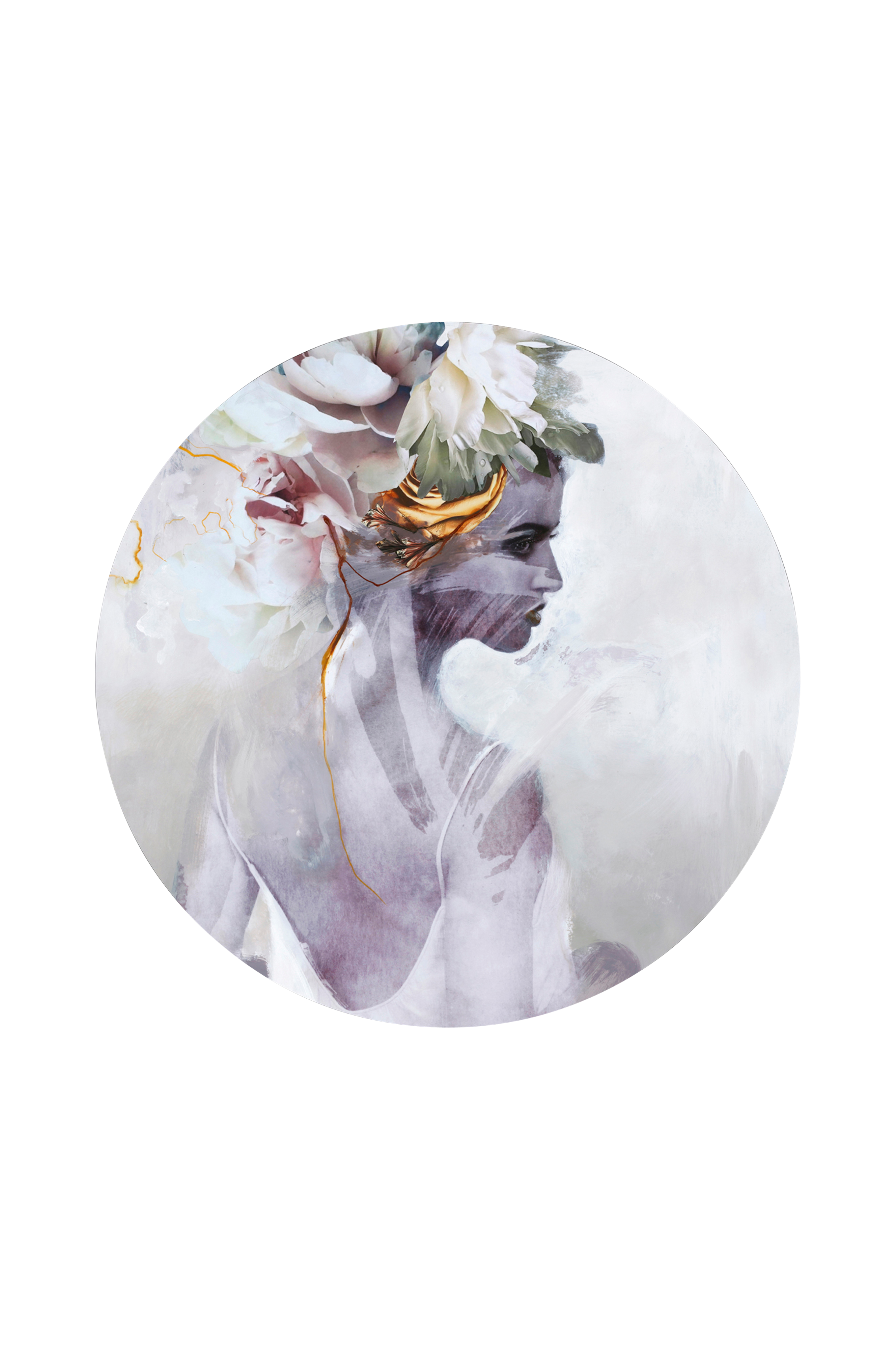 Malerifabrikken taulu. Painettu pyöreälle MDF-levylle. Seinälle ripustettuna levyn profiili saa aikaan vaikutelman, että taulun etuosa "leijuu" noin 0,5 cm irrallaan seinästä.