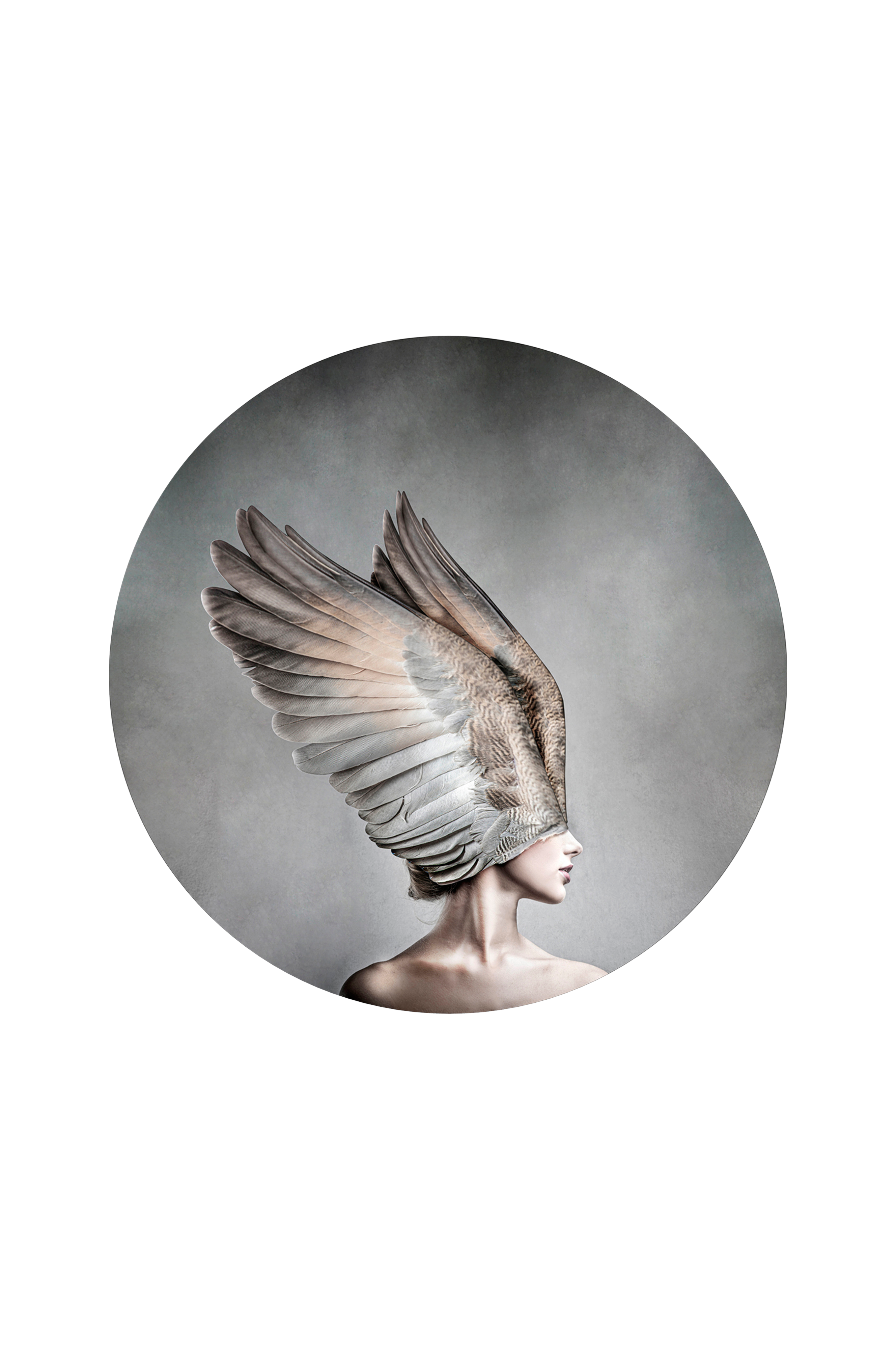 Malerifabrikken Thea -taulu. Painettu pyöreälle MDF-levylle. Seinälle ripustettuna levyn profiili saa aikaan vaikutelman, että taulun etuosa "leijuu" noin 0,5 cm irrallaan seinästä.