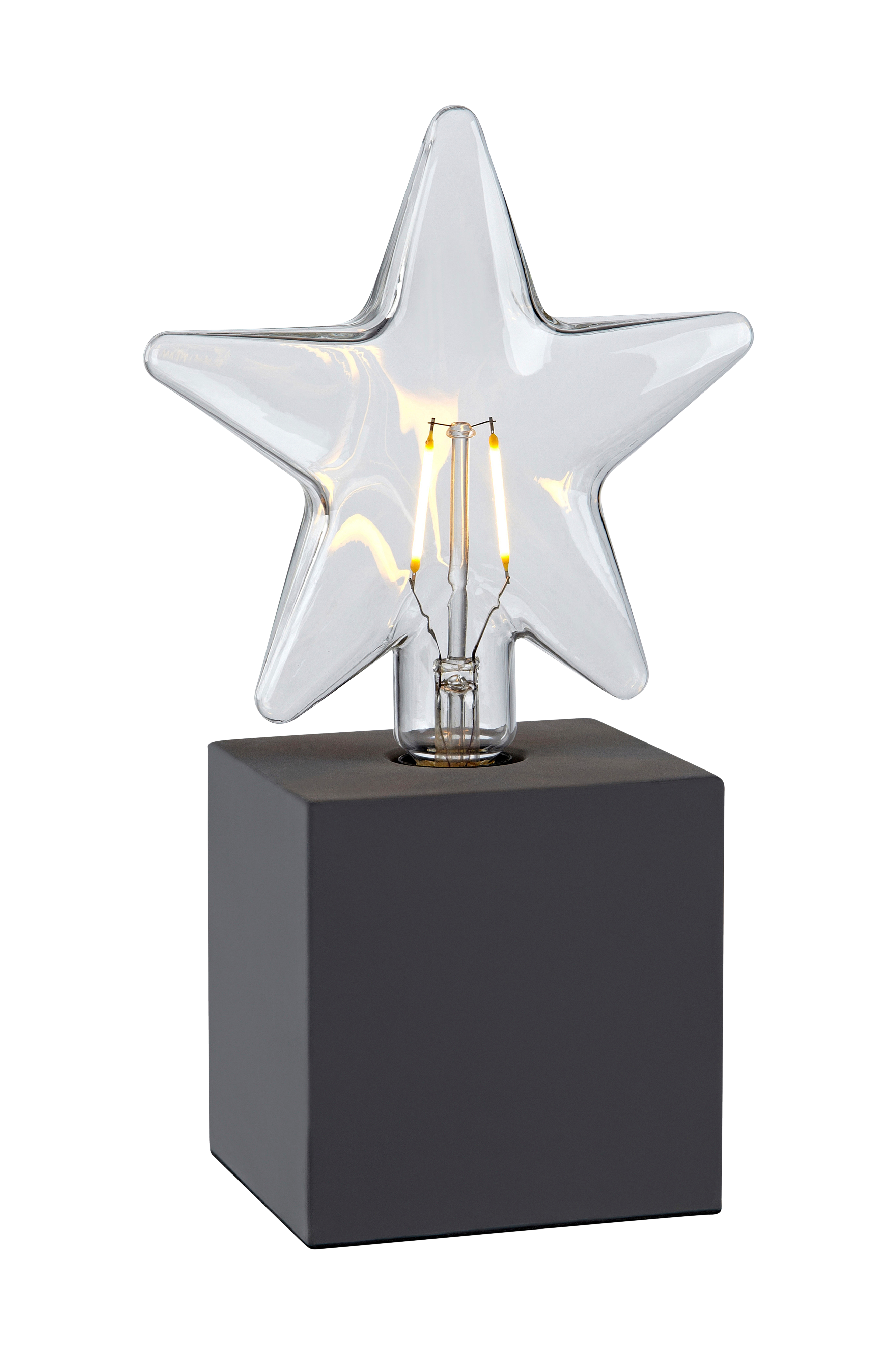 Markslöjd Collection Billsta -pöytäkoriste betonia. Tähden muotoinen valaisin. E14. Enintään 1W. Musta johto, jossa virtakytkin. Leveys 14, syvyys 10, korkeus 23 cm.