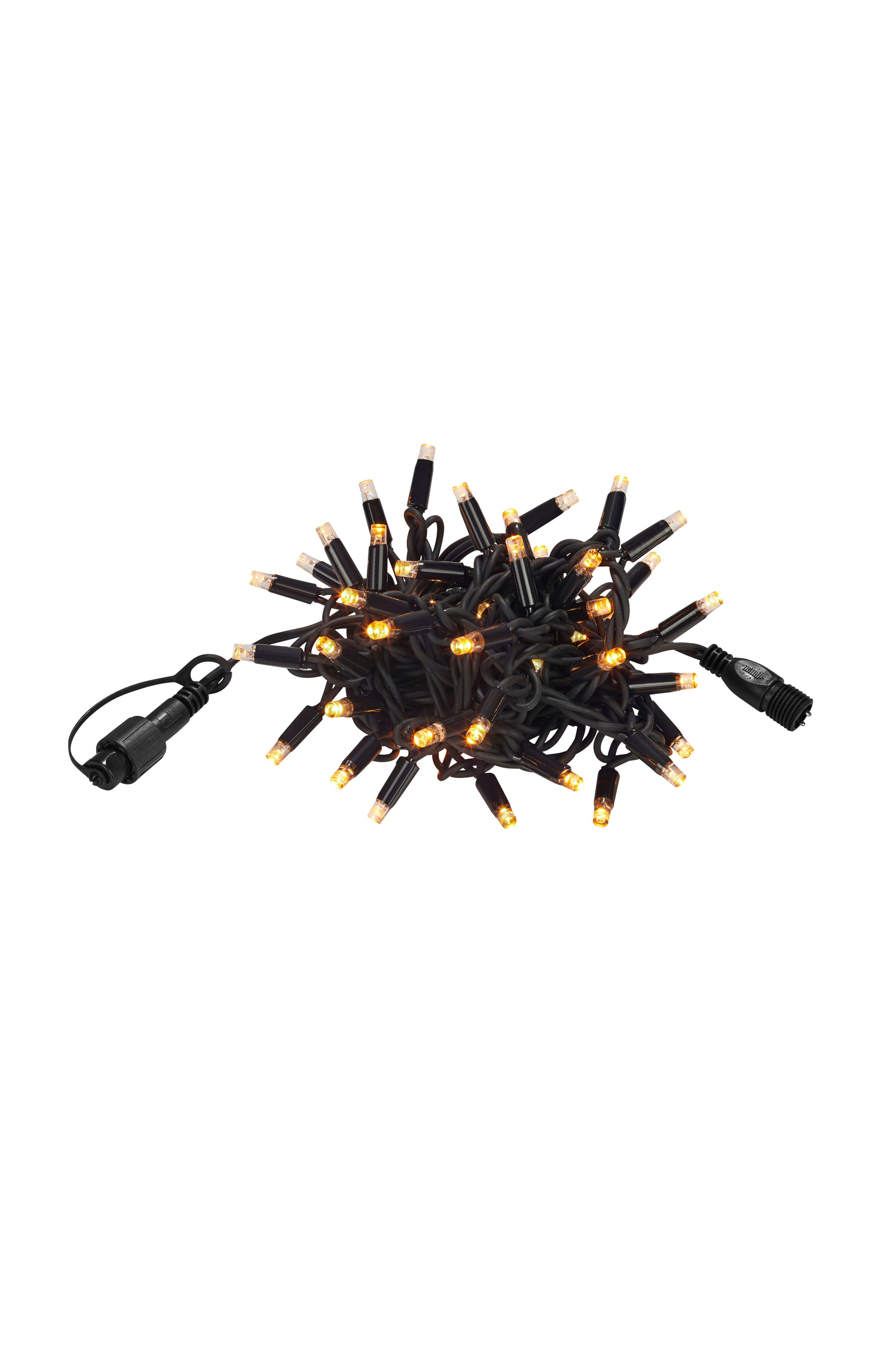 Chrissline Amber -valosarja, jossa 50 LED-valonähdettä. Kaunis, lähes pronssinvärinen valo. Hyväksytty ulkokäyttöön. IP44. Suora 5 metrin kumijohto, kokonaisteho vain 4,6 W. Voidaan yhdistää muihin Chrissline-järjestelmän valosarjoihin. Yhteensä enintään 100 metriä tai 2500 valonlähdettä. Täydennetään aloituskaapelilla, tuotenumero 704812.