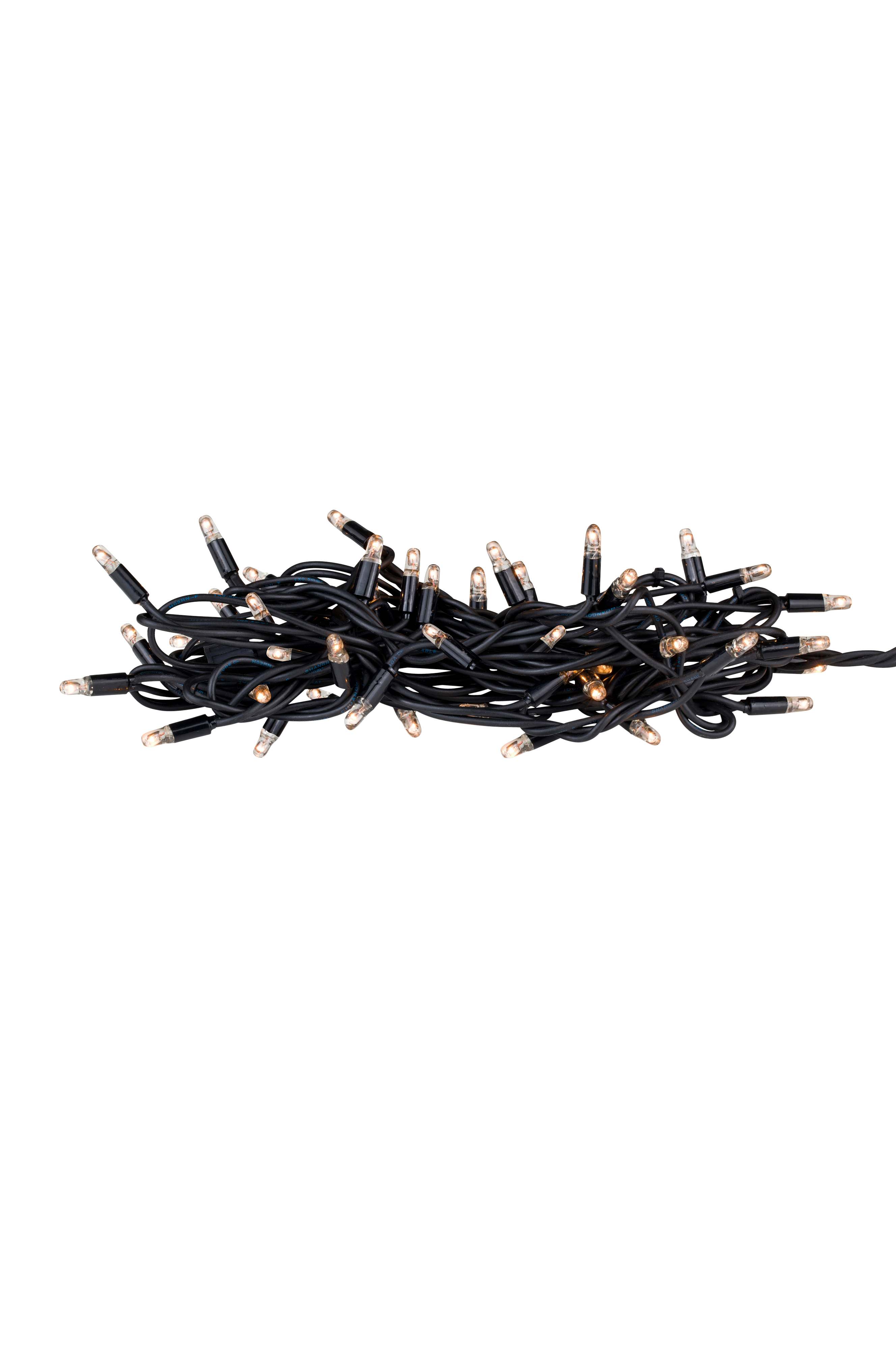 Chrissline Original -valosarja, jossa 100 lämpimän valkoista LED-valonlähdettä. Hyväksytty ulkokäyttöön. IP44. Suora 10 metrin kumijohto, kokonaisteho vain 9,2 W. Voidaan yhdistää muihin Chrissline-järjestelmän valosarjoihin. Yhteensä enintään 100 metriä tai 2500 valonlähdettä. Täydennetään aloituskaapelilla, tuotenumero 704812.