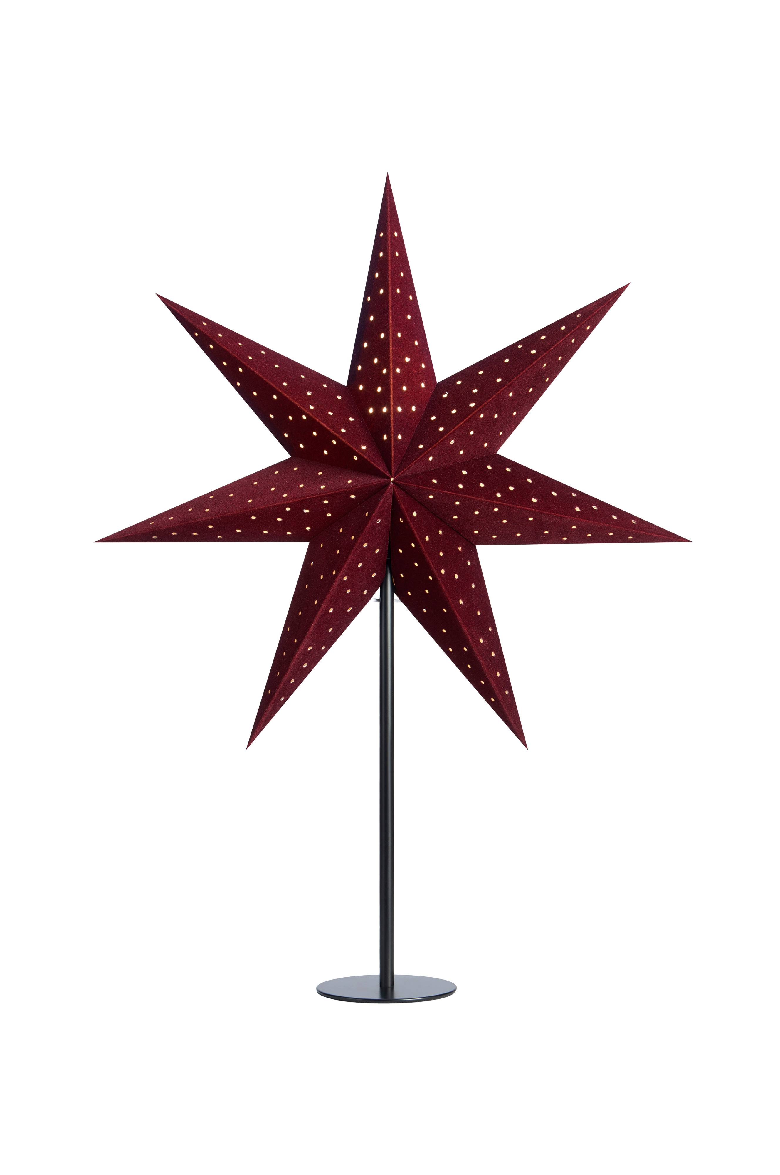 Markslöjdin Clara-pöytätähti. Jalusta metallia ja varjostin paperia. 1 x E14-lampunkanta. Enintään 25 W. 2 m:n muovijohto, jossa virtakytkin johdossa ja seinäpistoke. Valonlähde ei sisälly toimitukseen.