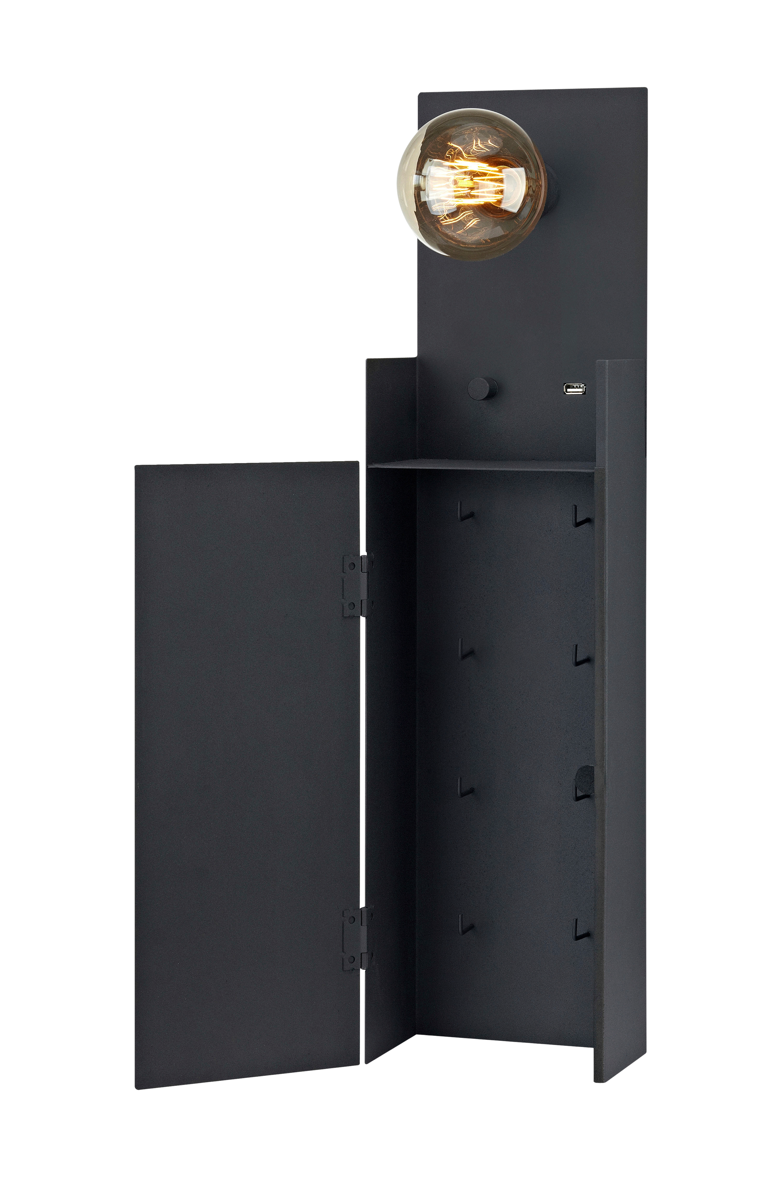 Markslöjd Combo -seinävalaisin ja avainkaappi mustaa metallia. Himmennettävä valaisin, säilytyspaikka avaimille sekä puhelimen lataus USB-liitännän kautta. 2 m:n pituinen johto ja himmennin. Iso E27-lampunkanta. Enintään 60W hehkulamppu tai vastaava halogeeni-, energiansäästö- tai LED-lamppu. Lamppu ei mukana.