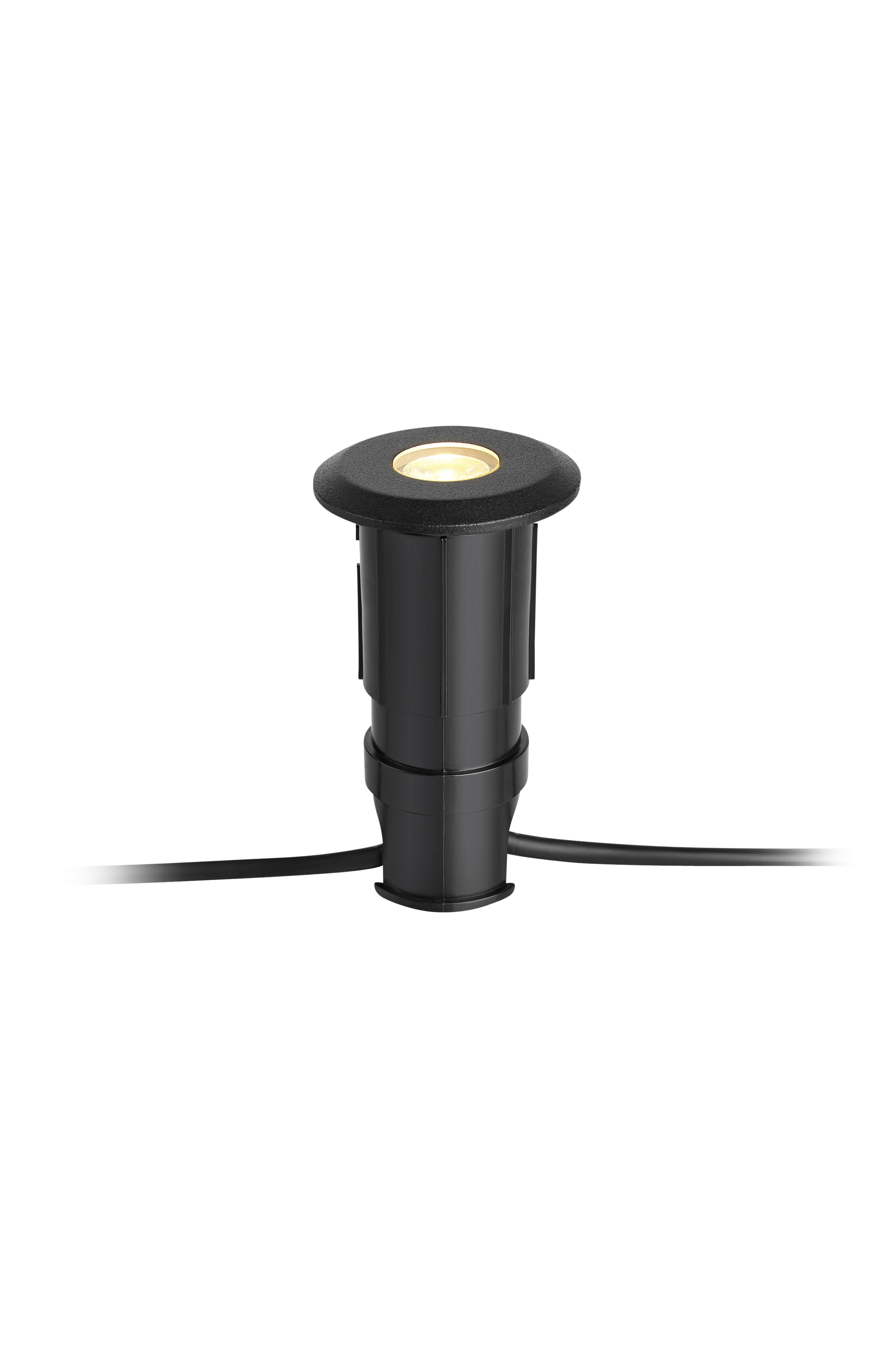 Garden 24 decklight. Halkaisija 6 cm, korkeus 10,5 cm. Johdon pituus 30 cm. Enintään 0,8 W. LED. IP44