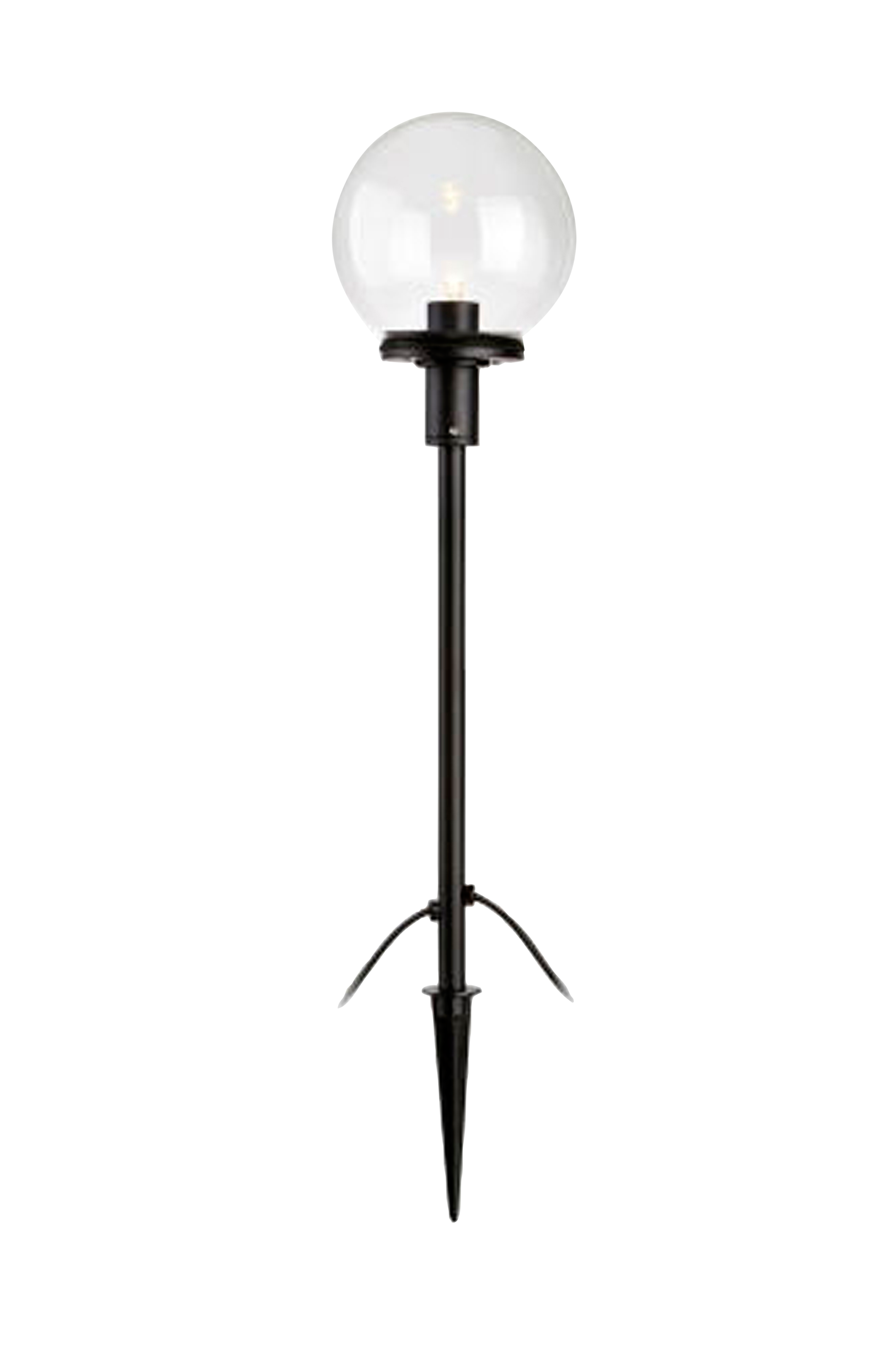 Markslöjd Garden 24 Sfär -pylväsvalaisin. Korkeus 60 cm, halkaisija 18 cm. Runko alumiinia ja varjostin lasia. LED. IP44