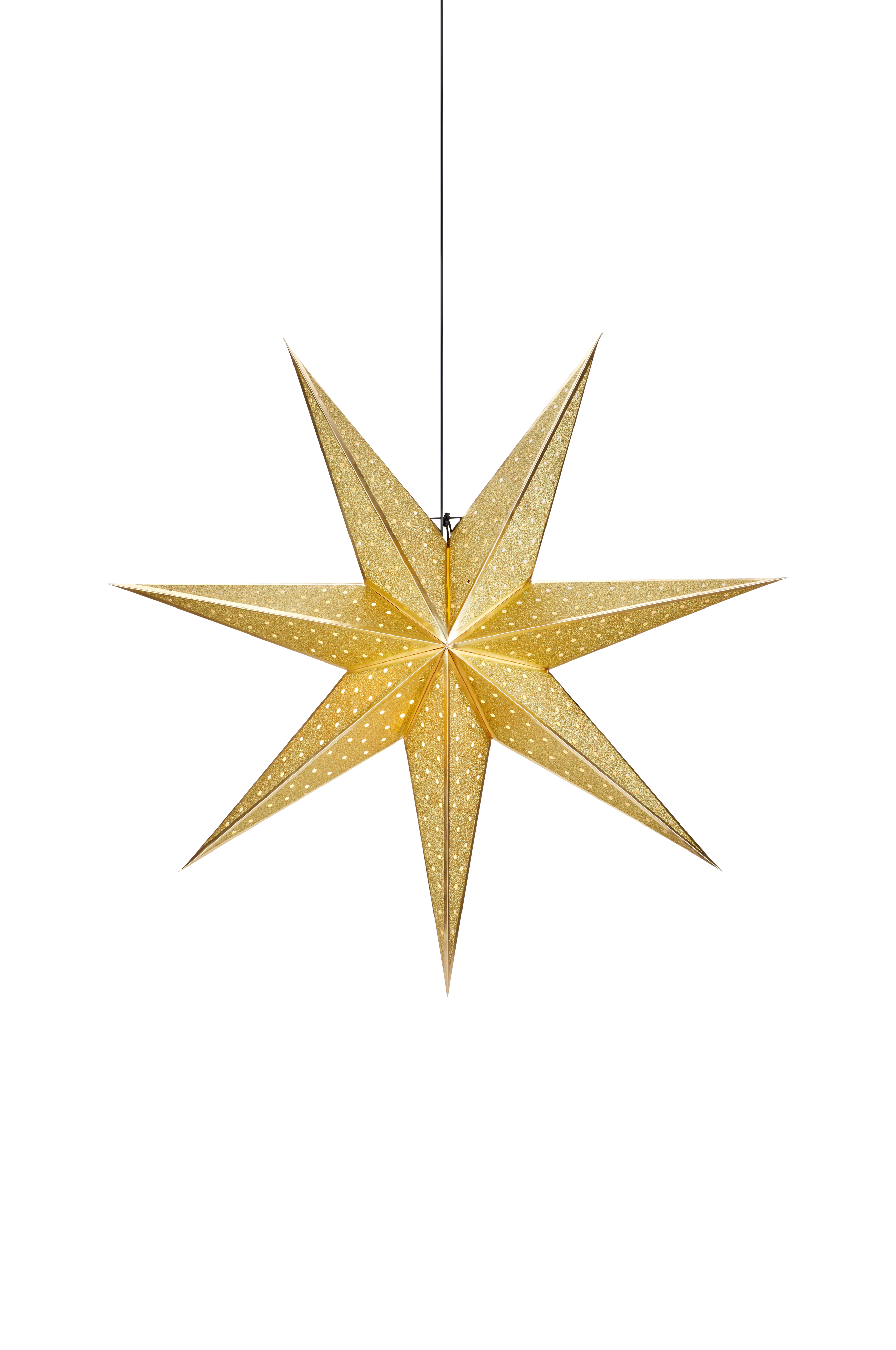 Riippuva Markslöjd Glitter -valotähti. Muovia, varjostin paperia. 1 x E14-lampunkanta. Enintään 6 W LED. 3,5 metrin muovijohto, jossa virtakatkaisin ja seinäpistoke. Valonlähde ei sisälly toimitukseen.