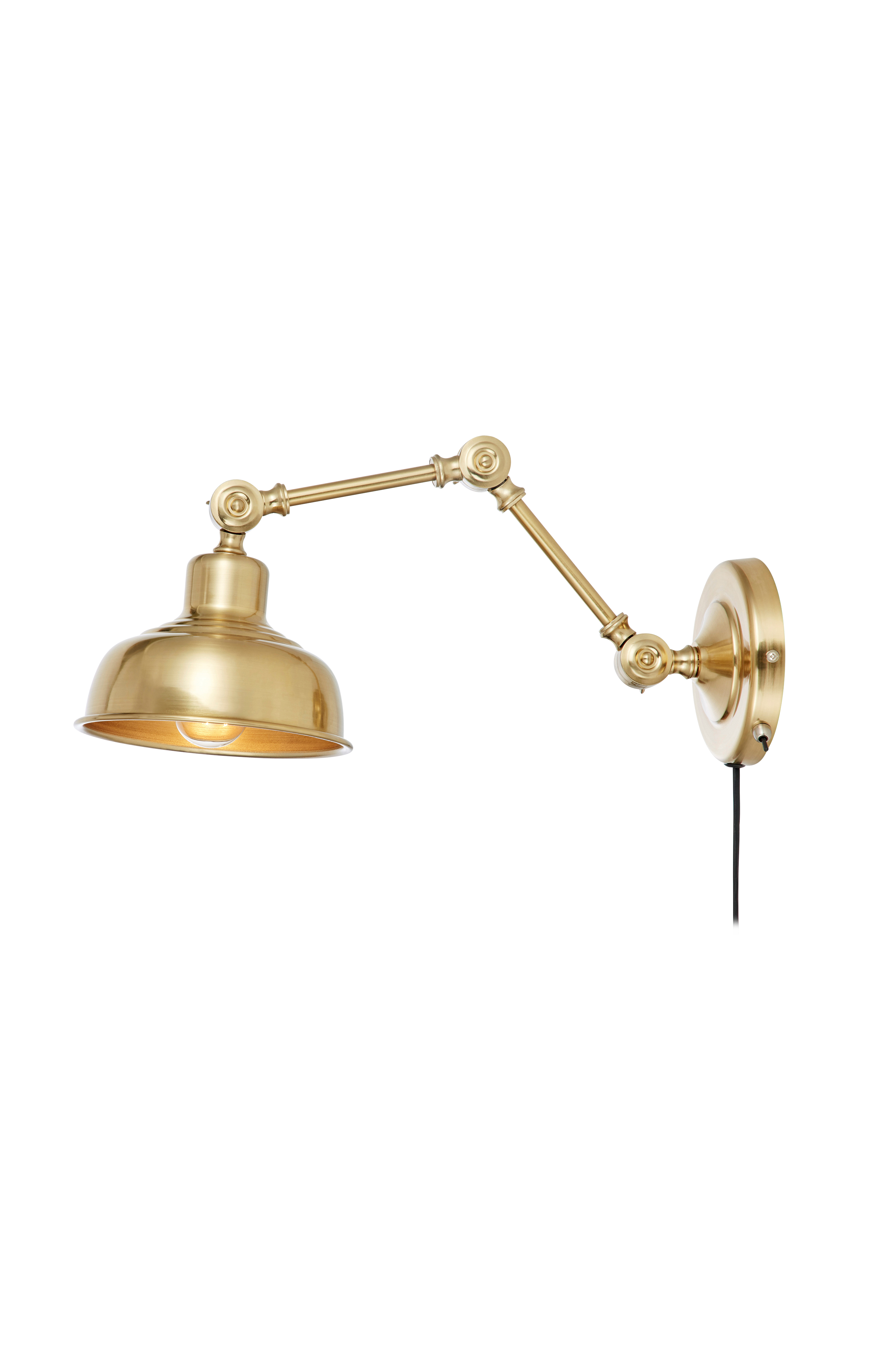 Hieno seinävalaisin tummaa messinkiä. Tyylikäs ja toimiva muotoilu. 2 metrin musta johto, jossa pistoke. Virtakytkin seinälevyssä. Lampunkanta (E27). Enintään 60 W:n lamppu tai vastaava LED-lamppu, ei mukana.