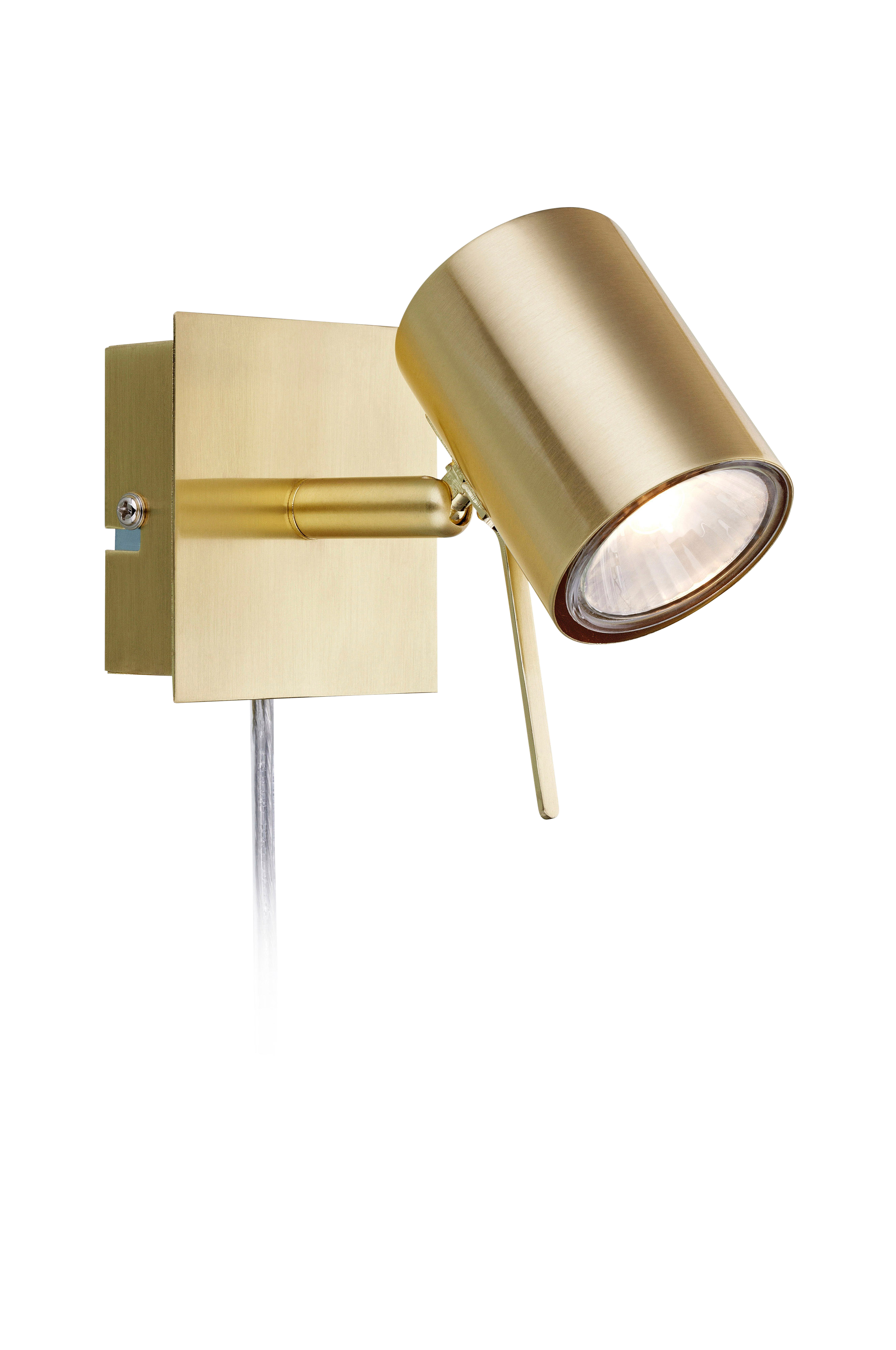Markslöjd Hyssna LED -seinävalaisin. Messinkipinnoitettua, harjattua metallia. Vaihdettava LED-valonlähde mukana. Virtakytkin seinälevyssä. 2 metrin johto, jossa maadoittamaton liitin (luokka II). Mukana toimitettava LED-valonlähde, joka ei ole himmennettävä. Korkeus 11 cm, leveys 8 cm ja syvyys 13 cm.