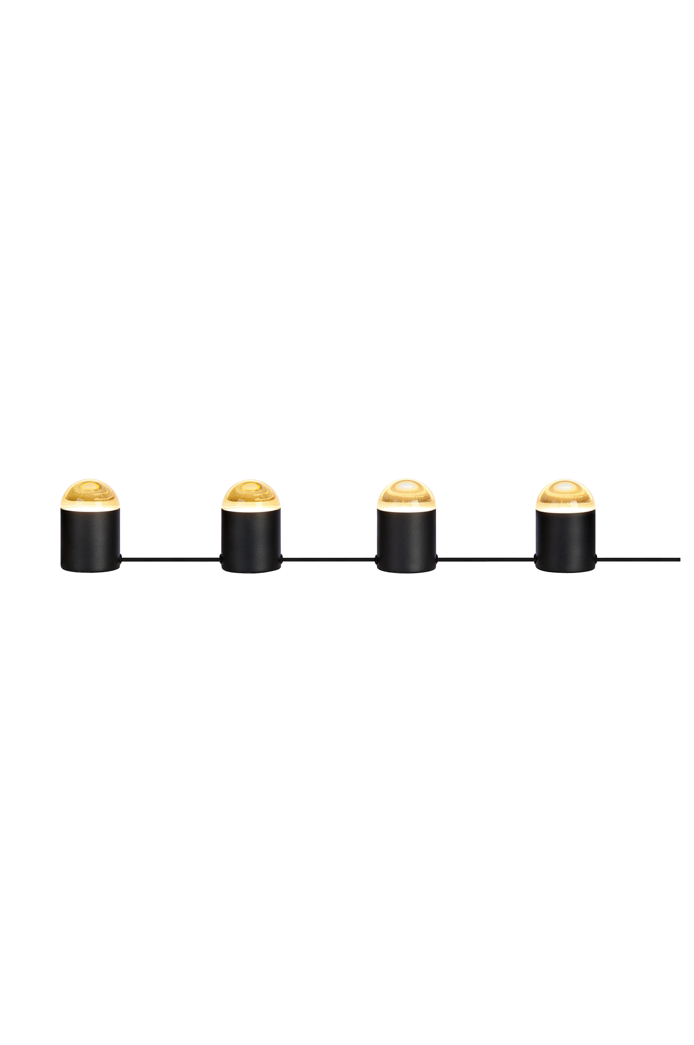 Markslöjd Jinx -pöytävalaisin. Jalka metallia ja kuvut kristallia. 2 m:n kangaspäällysteinen johto, jossa virtakytkin. Lamppujen etäisyys toisistaan 12 cm. GU10-lampunpidike. Enintään 6 W:n LED tai vastaava energiansäästölamppu. Valonlähteet eivät mukana.