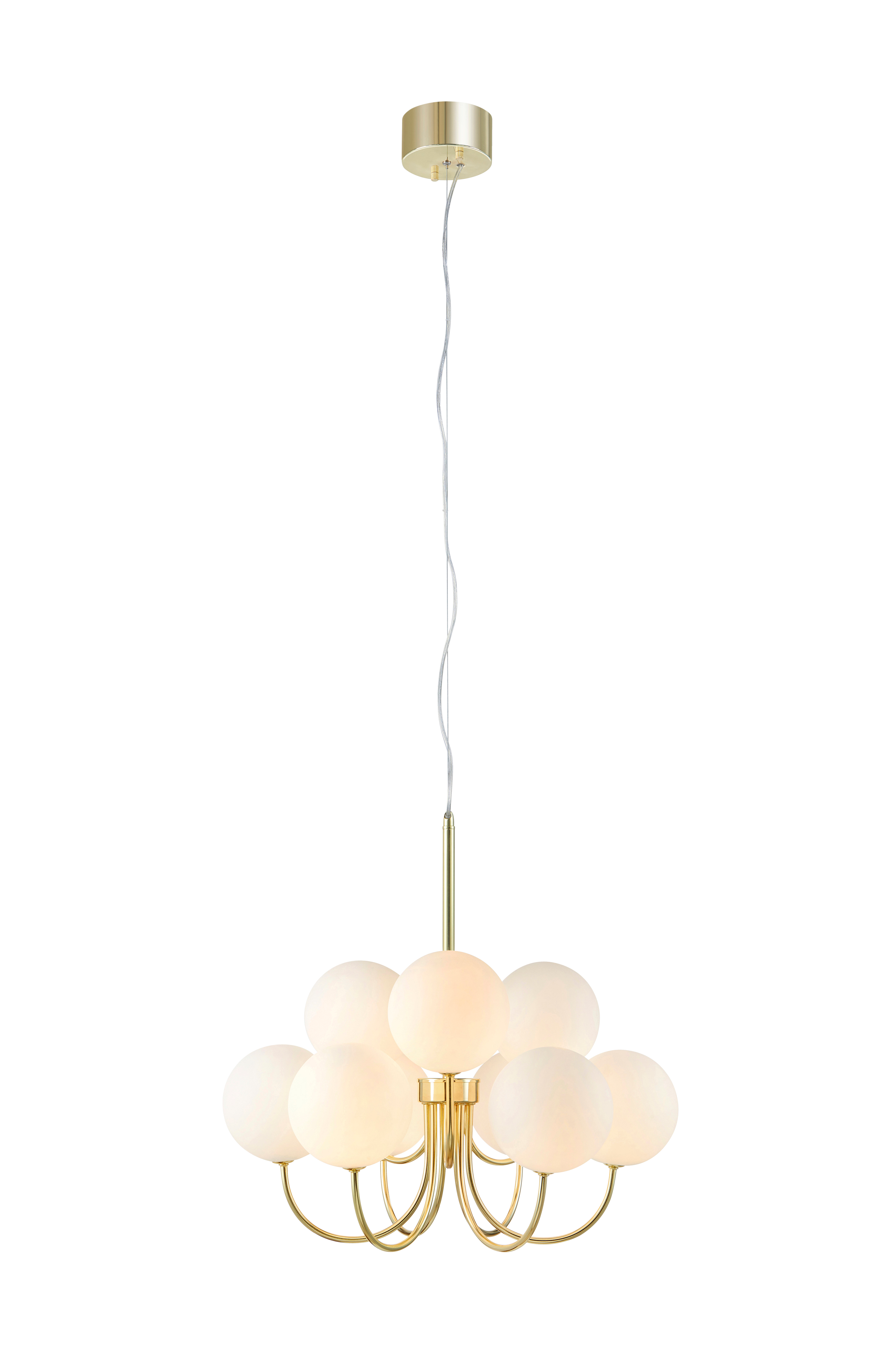 Markslöjd Bianco -kattovalaisin. Riippuvalaisin metallia, yhdeksän valkoista lasikupua. 1,5 m:n läpinäkyvä johto. Ripustuskoukku. Enintään 9x20W. G9-lampunkanta. Halkaisija 57 cm ja korkeus 54 cm. Valonlähde ei sisälly toimitukseen.