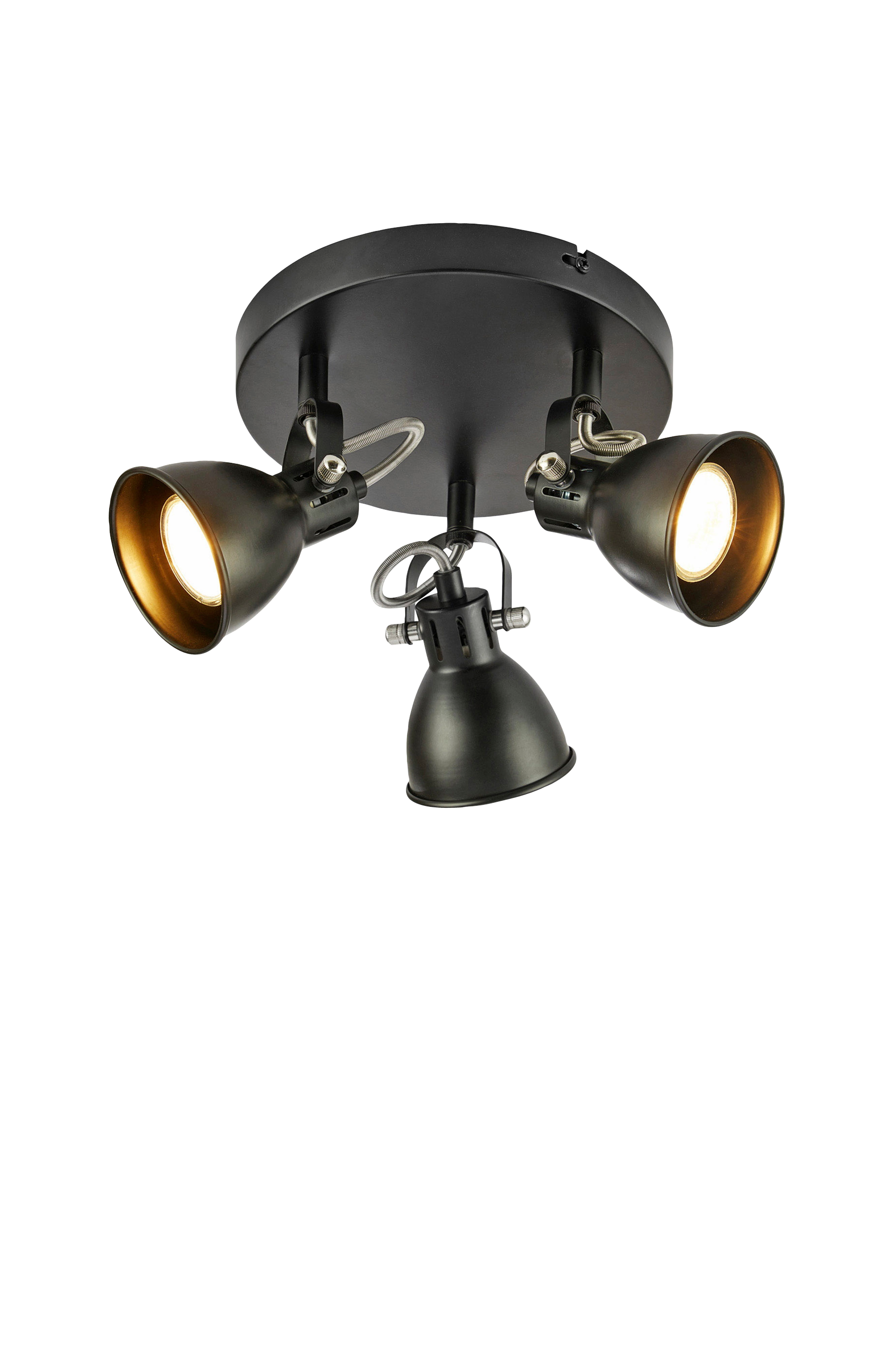 Mion kattovalaisin markslöjdiltä. Jalusta ja varjostimet rautaa. Asennetaan kattokannattimella. 3xgu10, max 7w. Valonlähteet eivät sisälly.