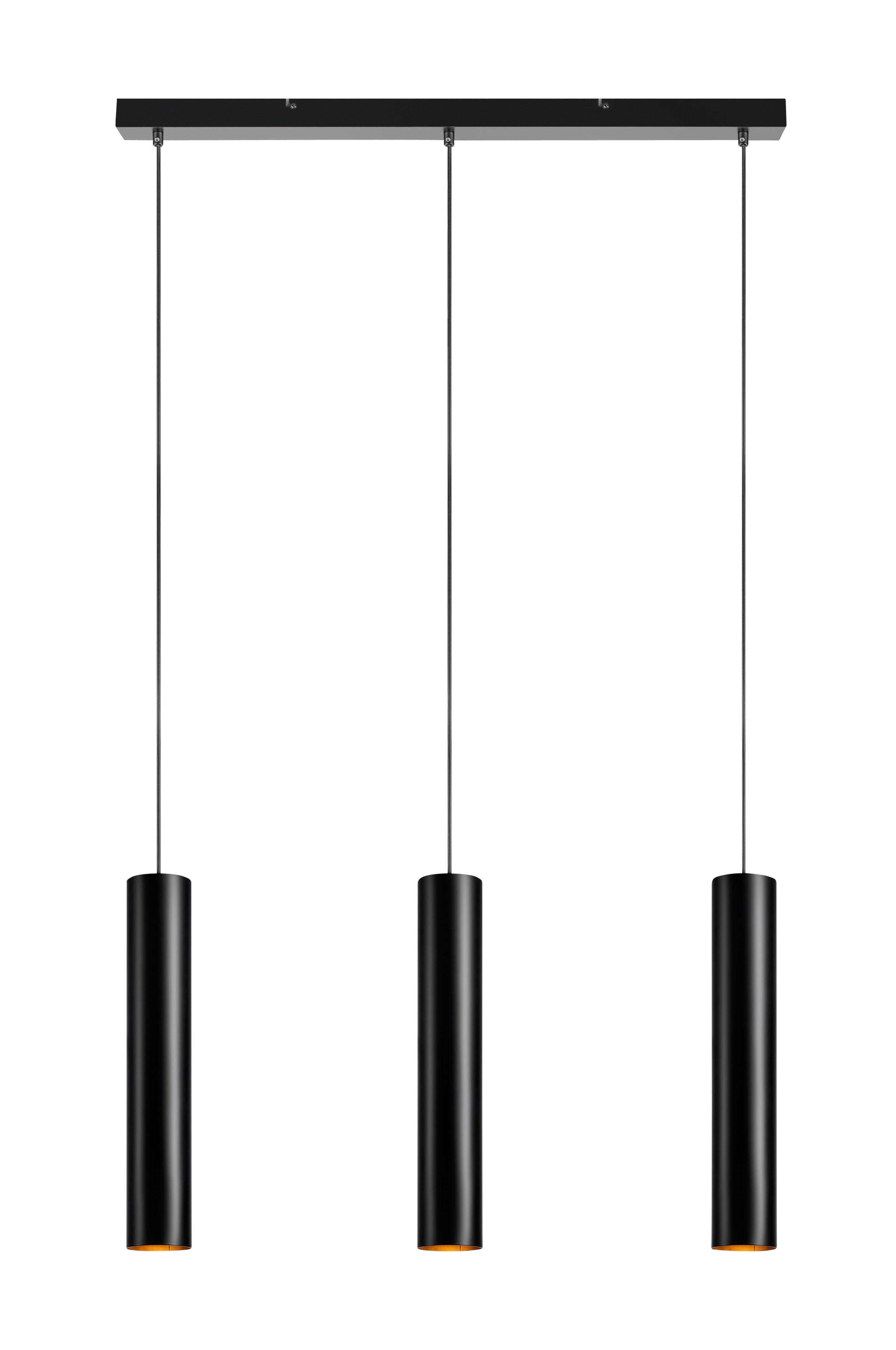Markslöjd Ruben -kattovalaisin. Metallinen kattovalaisin, jossa kolme lieriönmuotoista valaisinta. Jokaisessa valaisimessa on 1,5 m:n musta johto. Asennetaan kattokiinnikkeen avulla. Enintään 3x35 W. GU10-lampunkanta. Mitat 85 x 7 x 40 cm