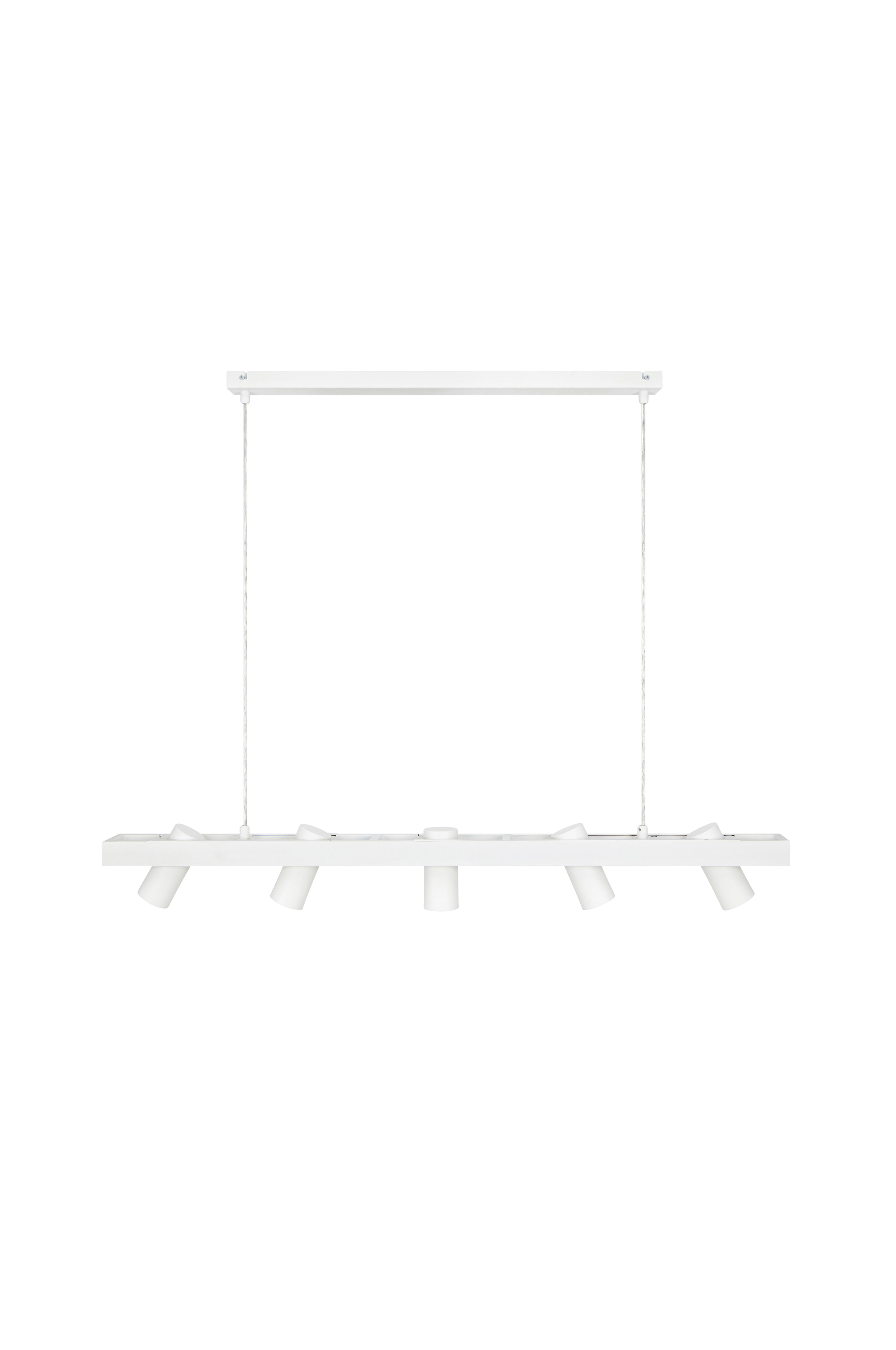 Markslöjd Torino -kattovalaisin. Kattovalaisin metallia ja varjostimet lasia. Viisi varjostinta. Ripustetaan kattokiinnikkeen avulla. 150 cm:n läpinäkyvä johto. Mitat: Korkeus 102 cm, syvyys 8 cm, leveys 12 cm. Enintään 5x7 LED. GU10-lampunkanta. Valonlähde ei mukana. Himmennettävä.