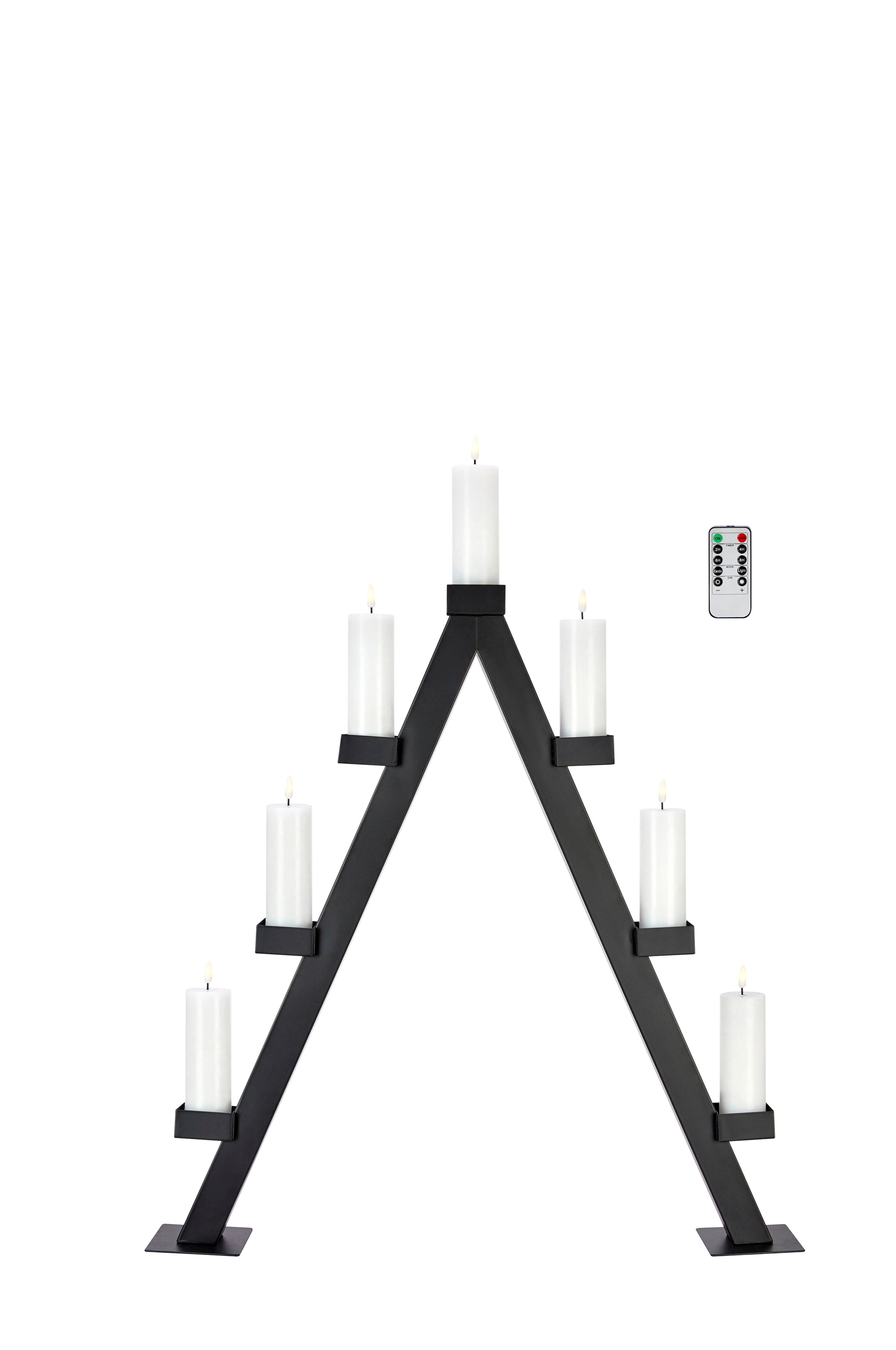 Arbor kynttilänjalka markslöjdiltä. Metallinen kynttilänjalka, jossa 7 kauko-ohjattavaa led-lohkokynttilää vahassa. 2,4,6 ja 8 tunnin ajastintoiminto. Säädettävä valoefekti, vakio tai liekki. Jatkuva valo 4 himmennettävällä portaalla. Korkeus 18 cm. Kytkin valon alla. Toimii 2xaa-paristoilla. Paristot eivät sisälly toimitukseen.