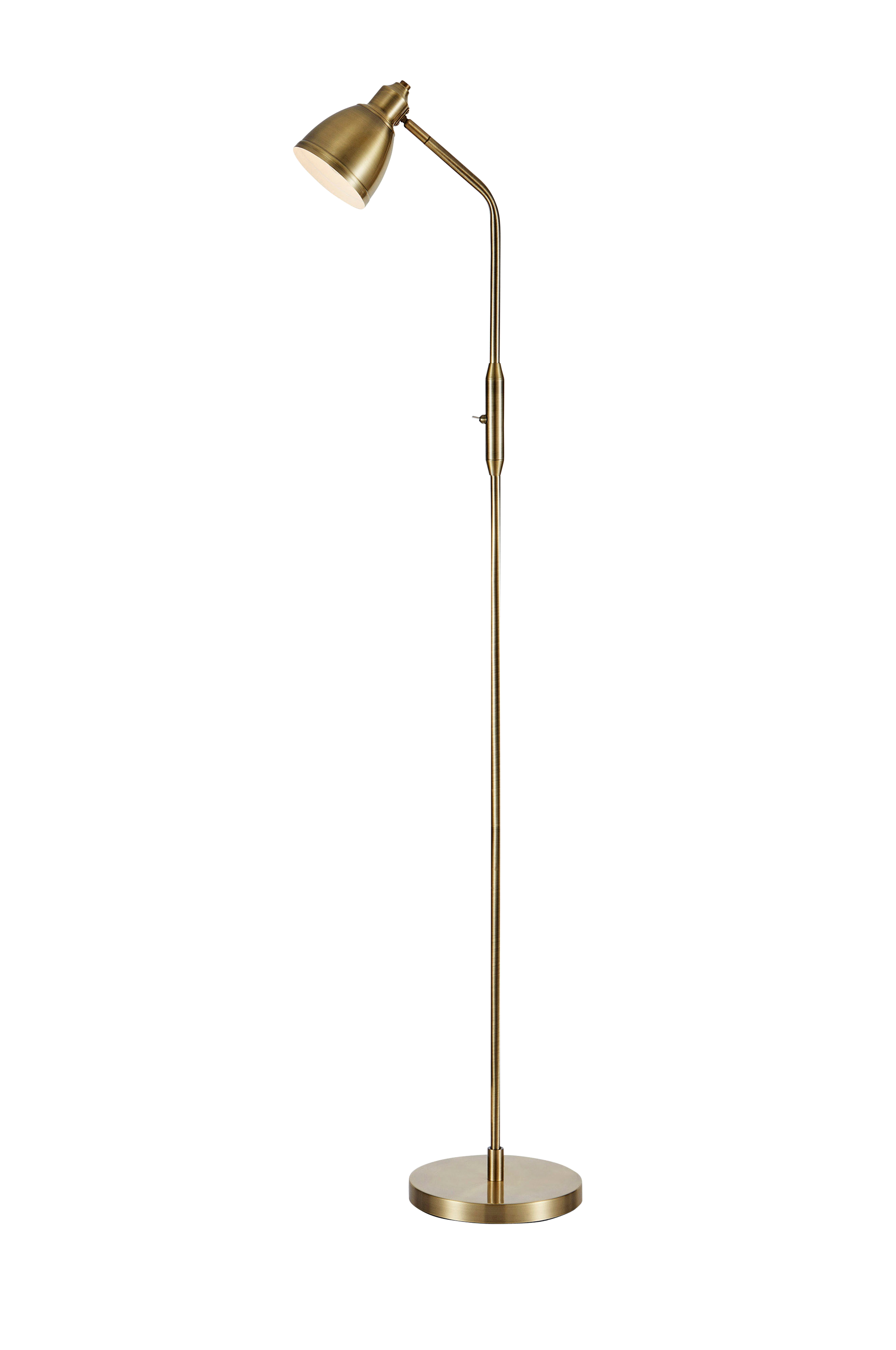 Markslöjdin Story-lattiavalaisin. Jalka ja varjostin metallia. 2 metrin johto, jossa seinäpistoke. Sisäänrakennettu katkaisin. 1 x E14, enintään 40 W. Valonlähde ei sisälly toimitukseen.