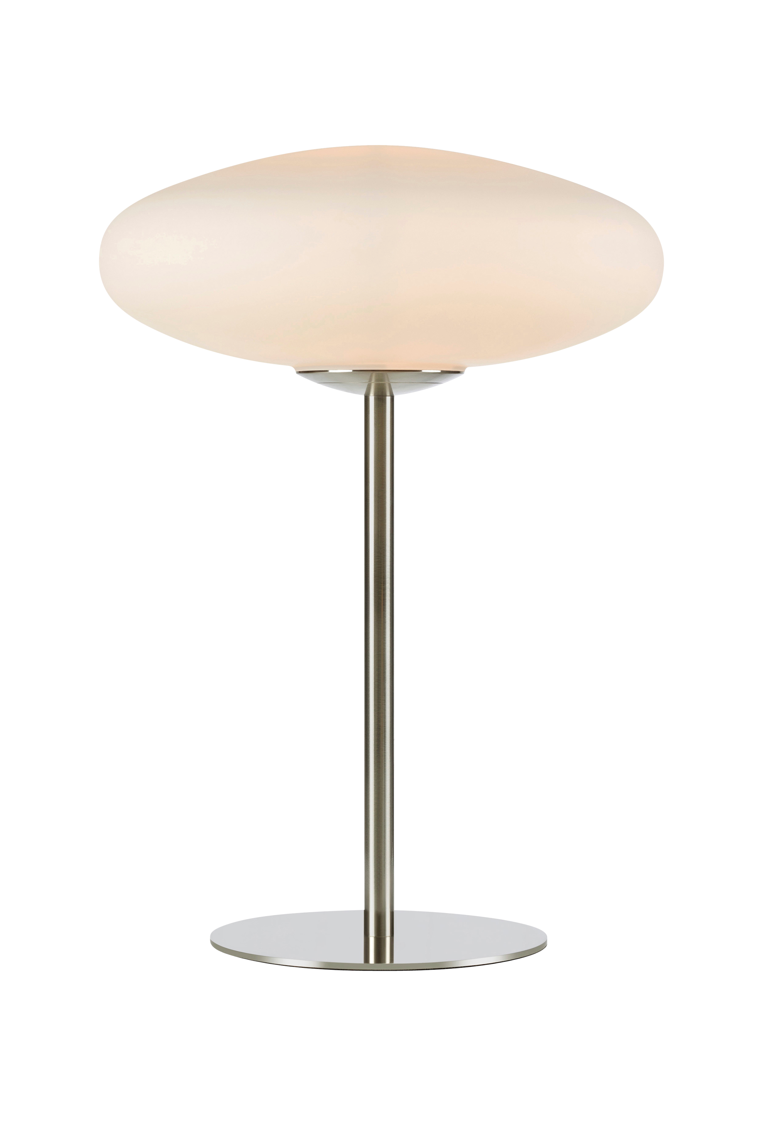 Markslöjd Locus-pöytävalaisin. Alusta metallia ja varjostin ovaalinmuotoista lasia. 2 metrin PVC-johto, jossa virtakatkaisin ja seinäpistoke. 1 x G9, enintään 18 W. Valonlähde ei sisälly toimitukseen.