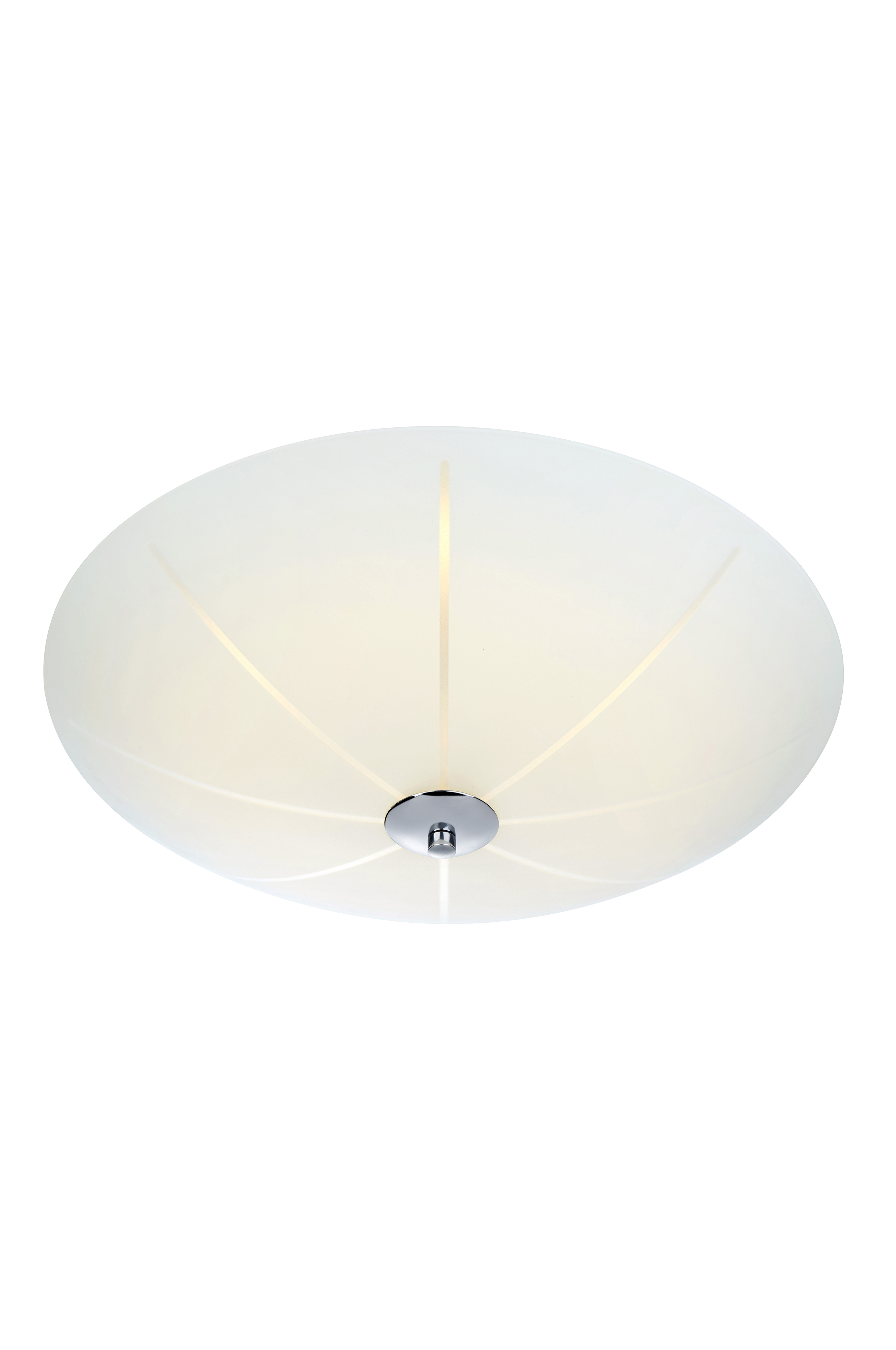 Markslöjd Nazca -plafondi. Metallia ja lasia. Varjostimessa läpinäkyvä kuvio. Kiinteä 15 W:n himmennettävä LED-lamppu. 820 lumenia. Värin lämpöisyys 3000 K. Kattokoukku.