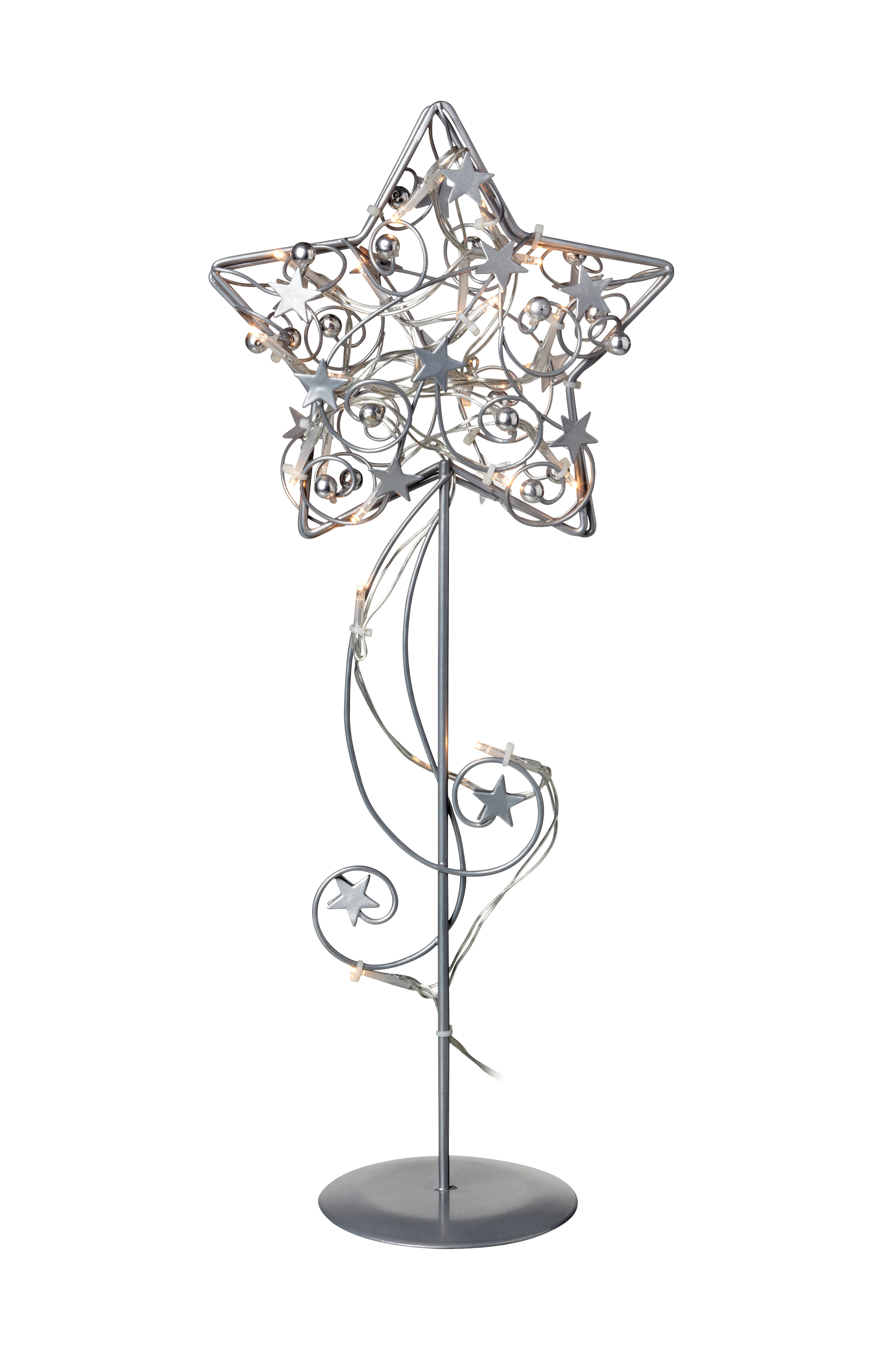 Markslöjdin metallinen Hagaberg-pöytätähti. 20 integroitua LED-valonlähdettä, joissa lämpimän valkoinen valo, enintään 0,5 W. 1,7 metrin läpinäkyvä muovijohto, jossa seinäpistoke (plug-in-muuntaja).