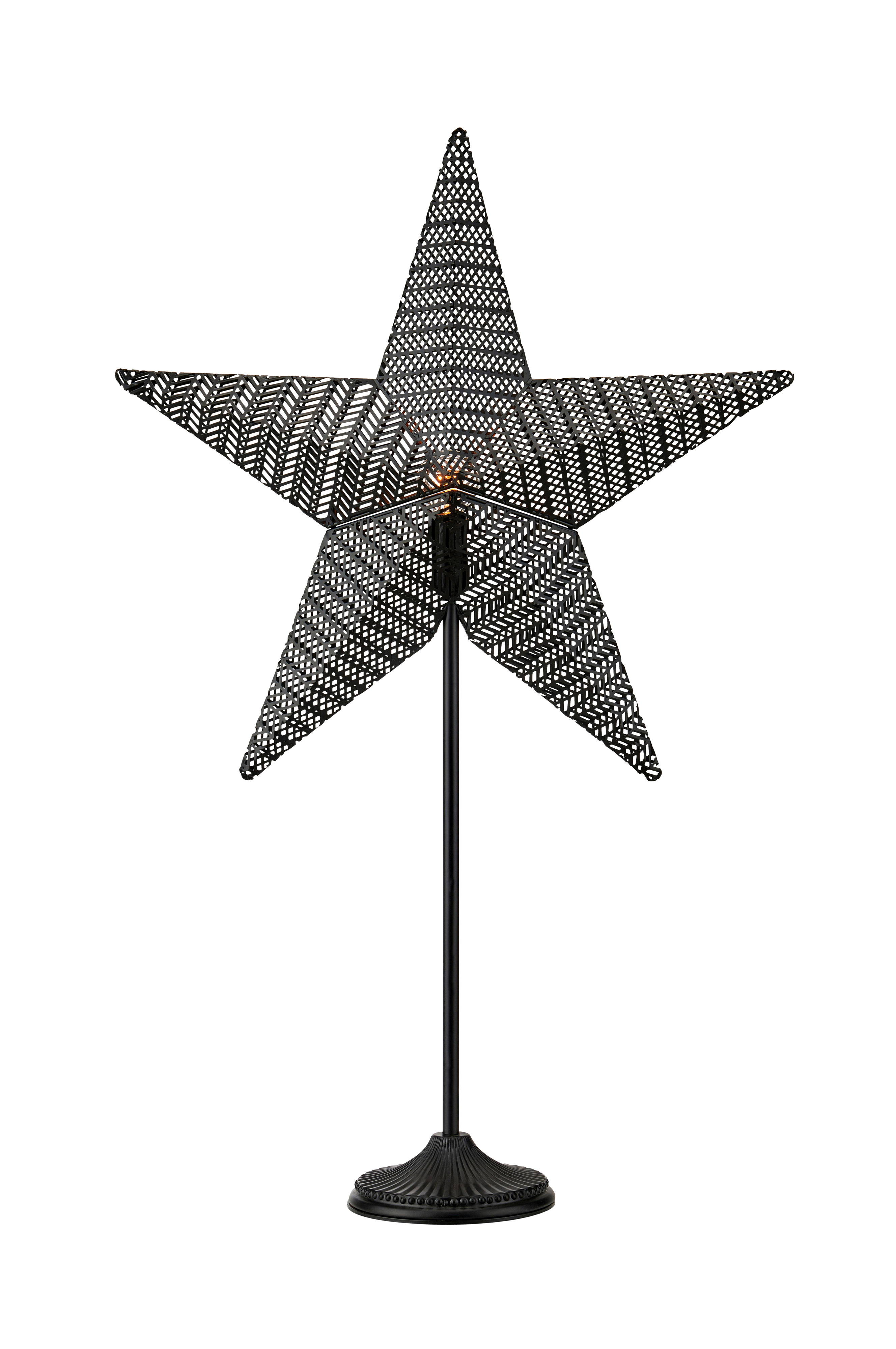 Pöytätähti metallia. 2 m:n muovijohto, jossa virtakytkin johdossa ja pistoke. Pieni lampunkanta (E14). Enintään 25 W:n lamppu tai vastaava LED-lamppu. Valonlähde mukana.