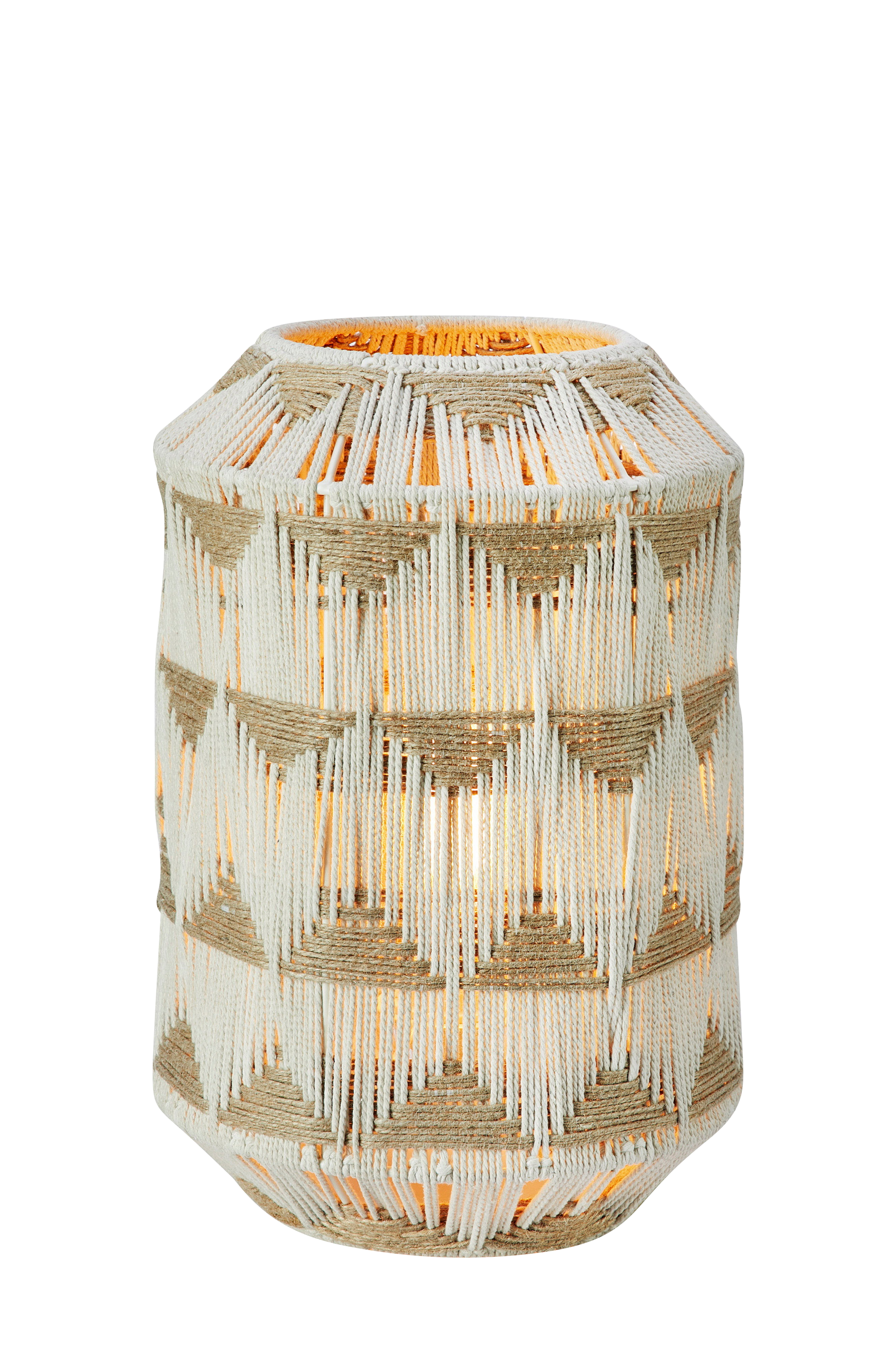 Ano pöytävalaisin markslöjdiltä. Rautakehyksellä varustettu varjostin, joka on kiedottu puuvilla- ja juuttilangoilla. Kuvioitu. 2 m valkoinen tekstiilikaapeli, jossa kytkin johdossa ja seinäpistoke. 1xe27, max 40w. Valonlähde ei sisälly.
