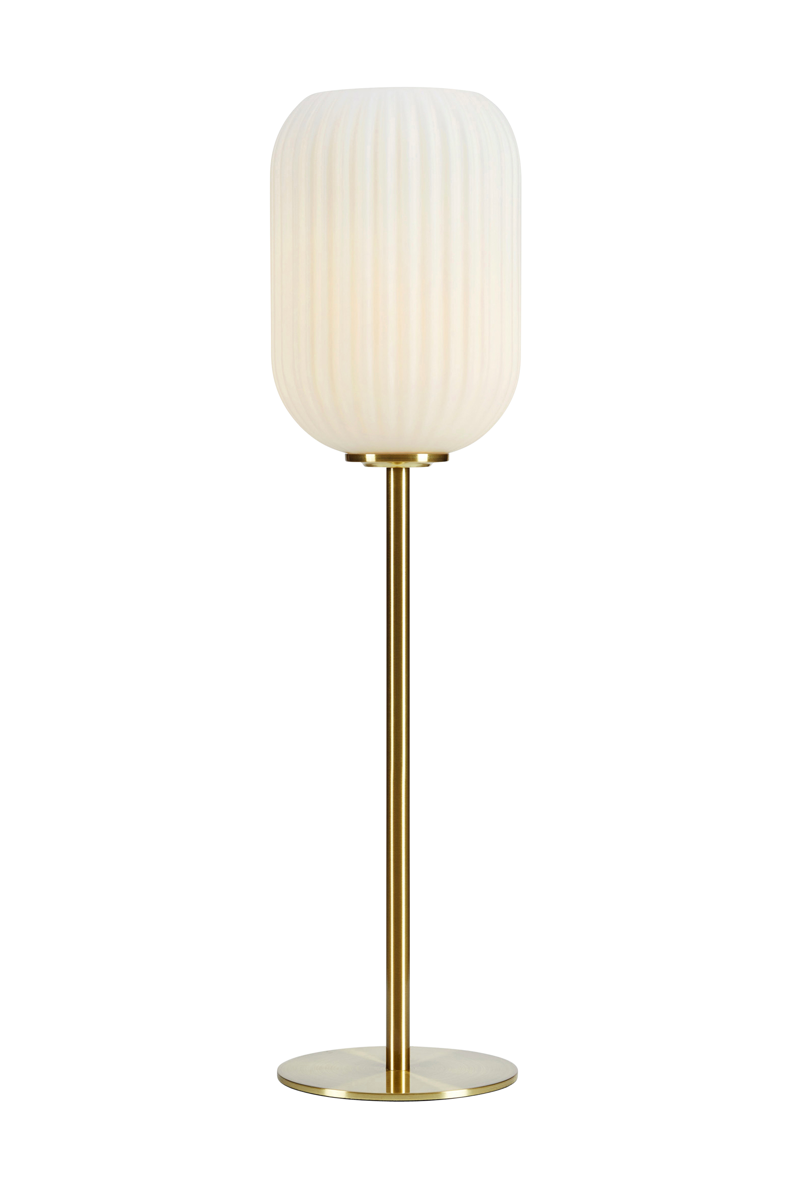Markslöjdin Cava-pöytävalaisin, jossa metallirunko ja lasivarjostin. 200 cm:n pituinen kangasjohto, jossa katkaisin ja pistoke. Valonlähde ei sisälly toimitukseen.