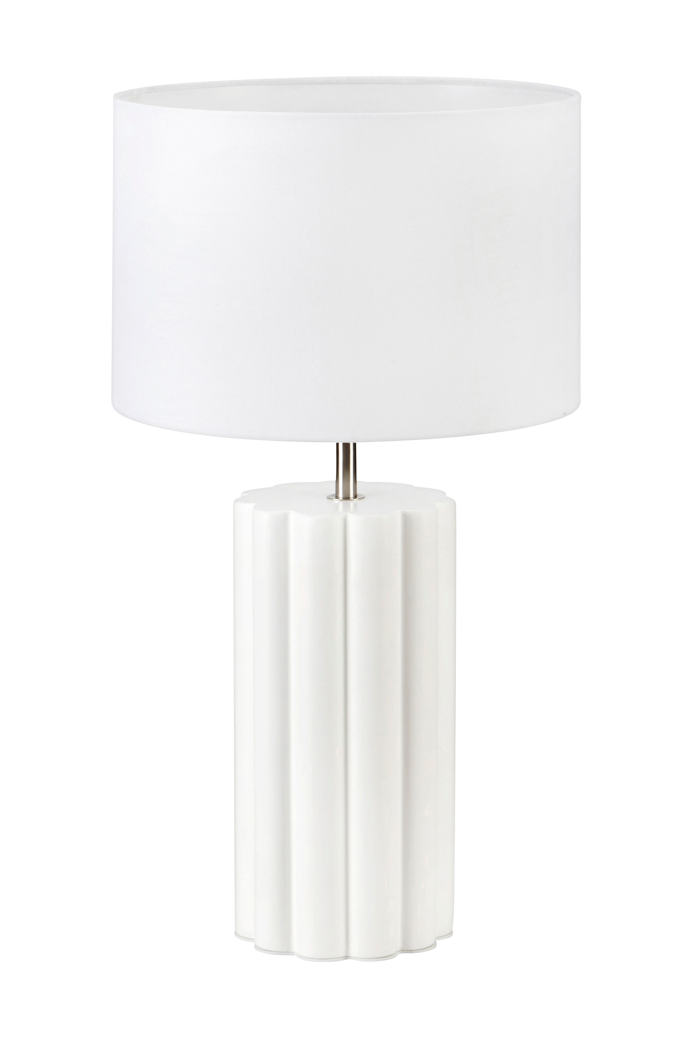 Column-pöytävalaisimen jalusta keramiikkaa, valkoinen tekstiilivarjostin. 2 m:n muovijohto, jossa virtakytkin johdossa ja seinäpistoke. 1 x E14-lampunkanta. Enintään 18 W. Lamppu ei sisälly toimitukseen.