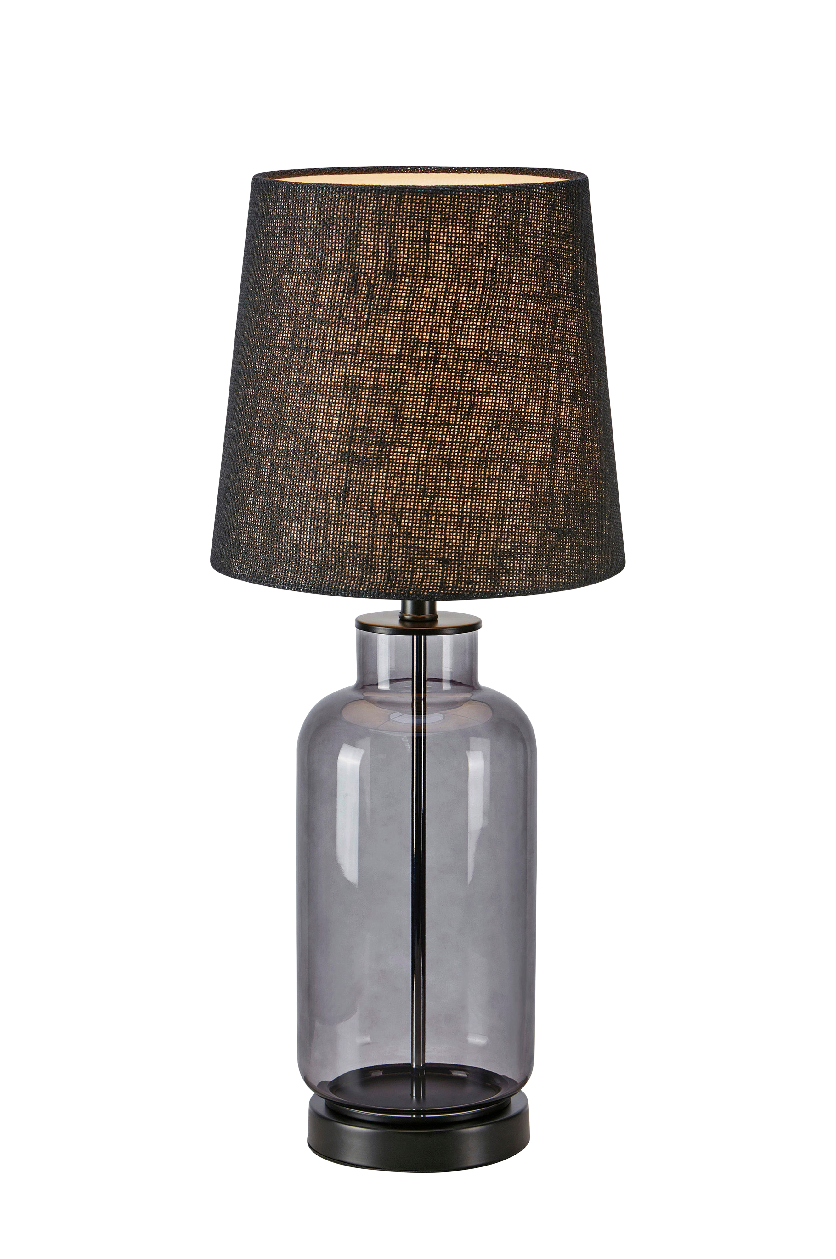 Markslöjdin Costero-pöytävalaisin. Jalka lasia ja metallia, varjostin juuttia. Korkeus 61,5 cm. 2 metrin johto, jossa virtakytkin ja seinäpistoke. 1 x E27, enintään 40 W. Valonlähde ei sisälly toimitukseen.