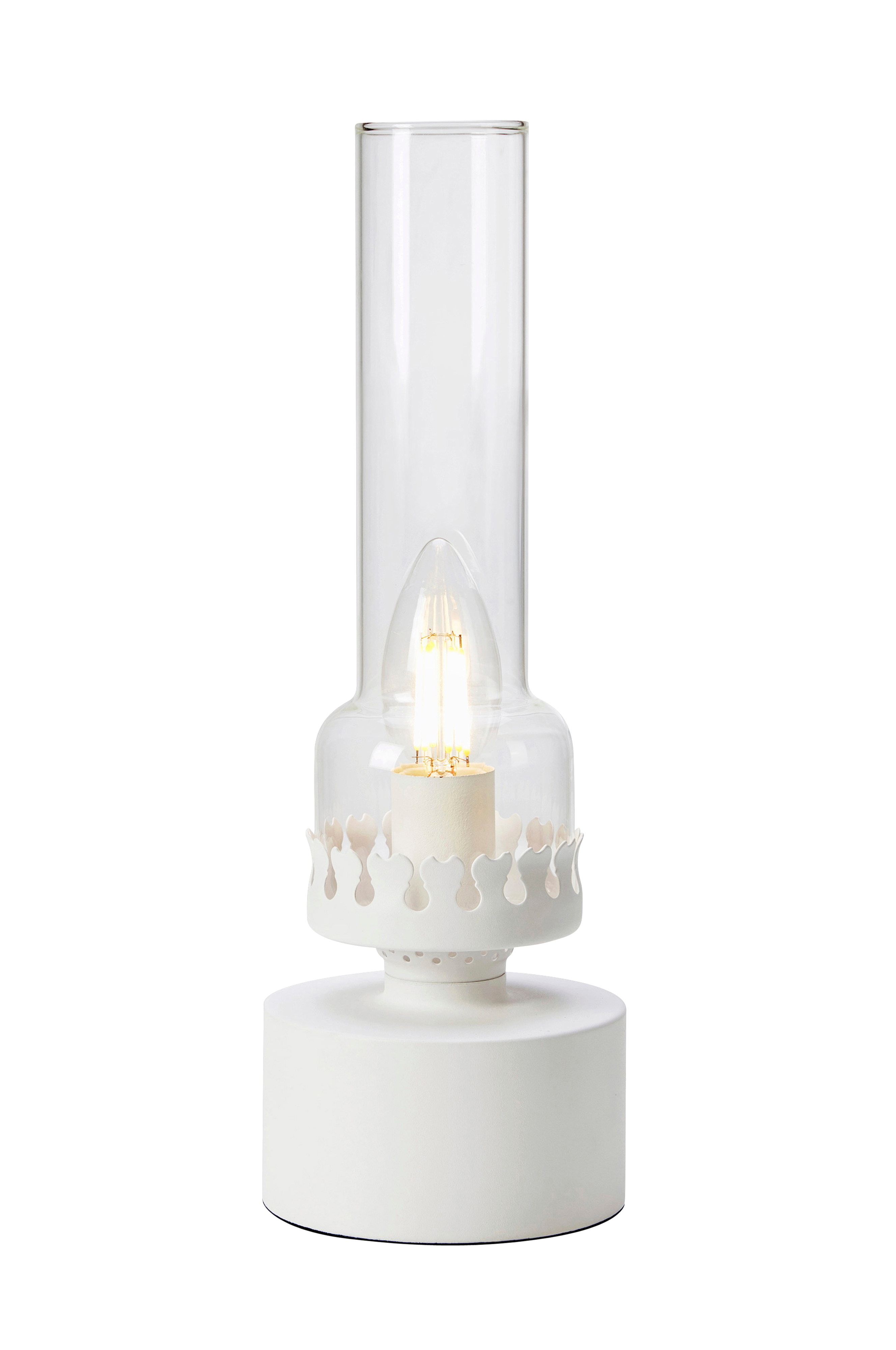 Kandella pöytävalaisin markslöjdiltä. Jalusta metallia ja varjostin kirkasta lasia. 2 m läpinäkyvä pvc-kaapeli, jossa kytkin johdossa ja seinäpistoke. 1xe14, max 40w. Valonlähde ei sisälly.