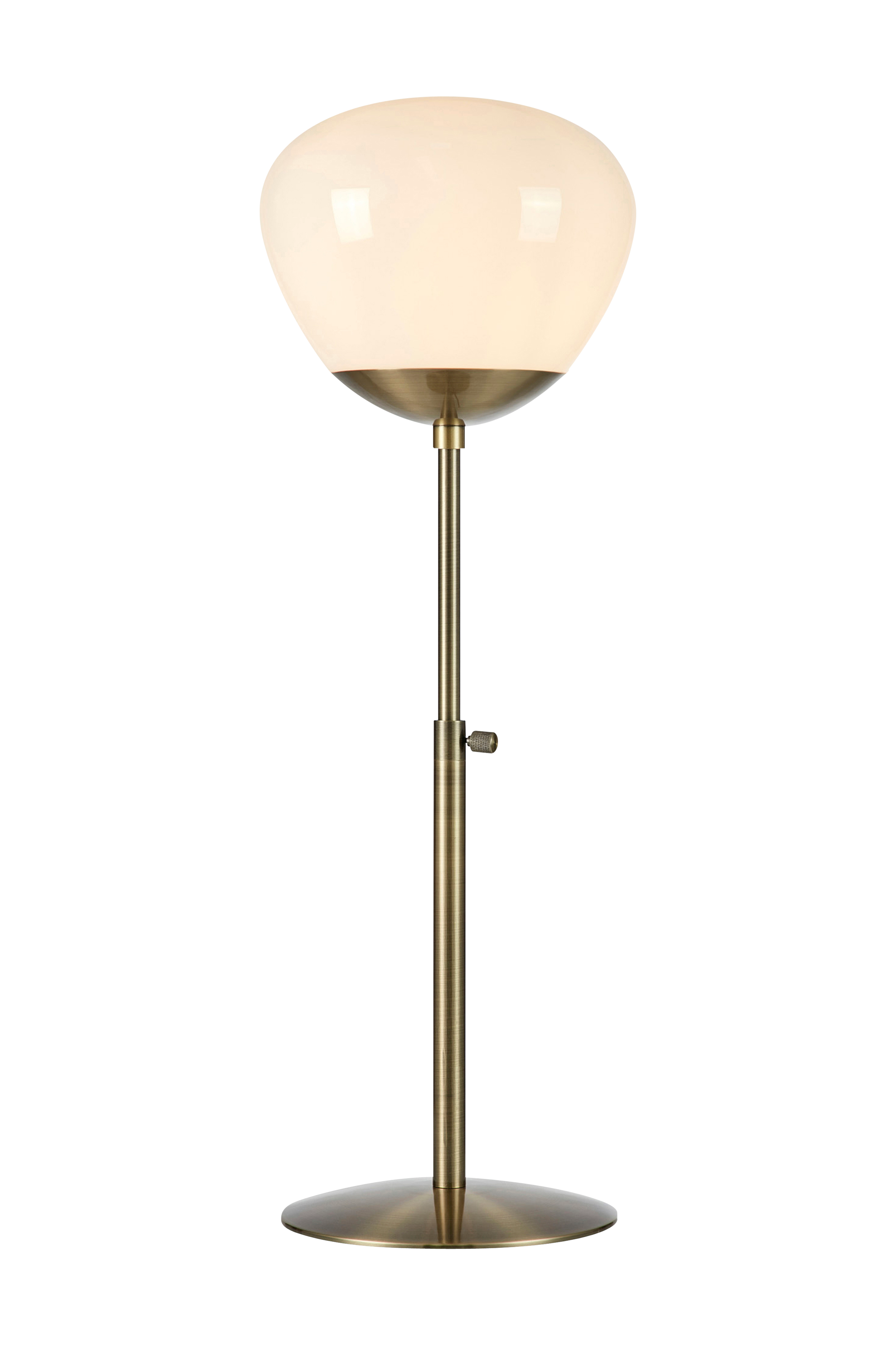 Markslöjdin Rise-pöytävalaisin, jossa metallirunko ja lasikupu. Säädettävä varren korkeus. Valaisimessa on 200 cm:n pituinen kangasjohto, jossa katkaisin ja pistoke. Valonlähde ei sisälly toimitukseen. Suunnittelija Monika Mulder.