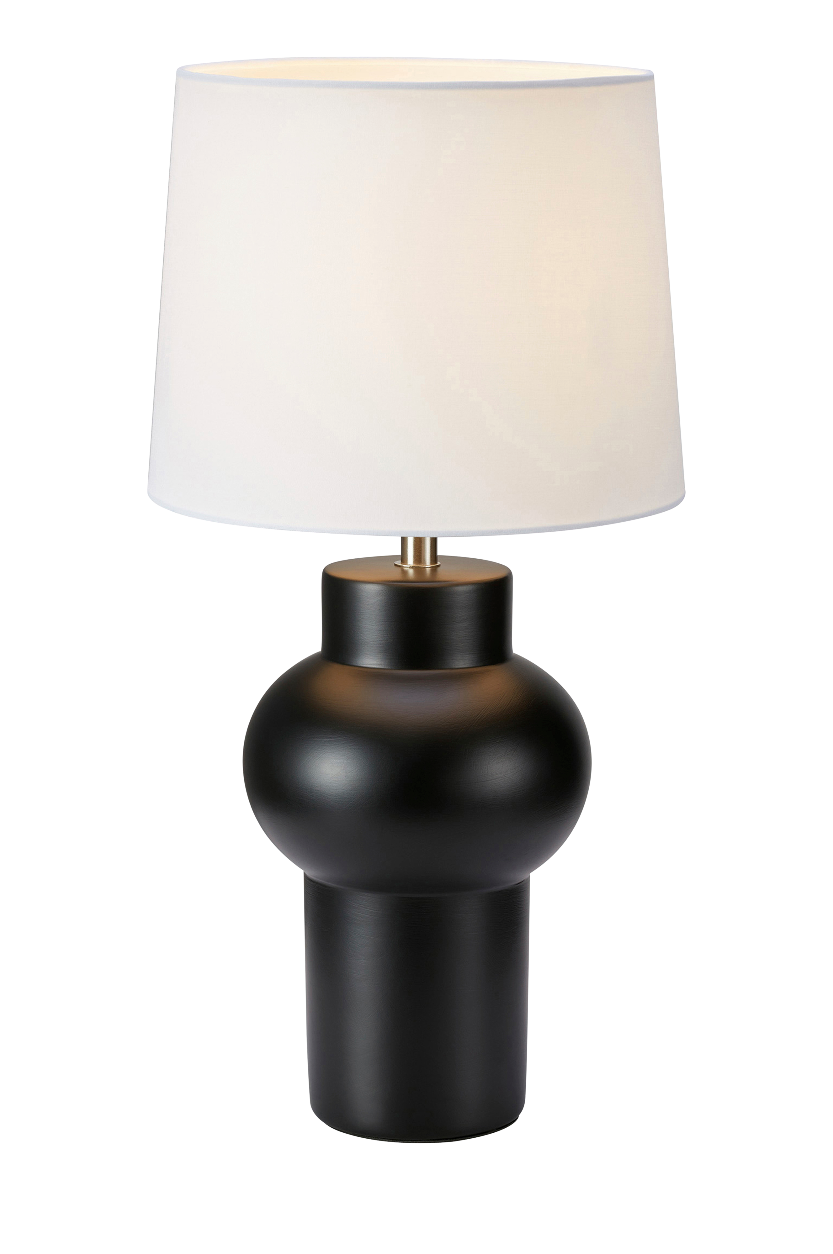 Markslöjd Shape -pöytävalaisin. Lampunjalka keramiikkaa ja varjostin kangasta. 2 metrin PVC-johto, jossa virtakatkaisin ja seinäpistoke. 1xE27 lampunkanta, enintään 40 W. Valonlähde ei sisälly toimitukseen.
