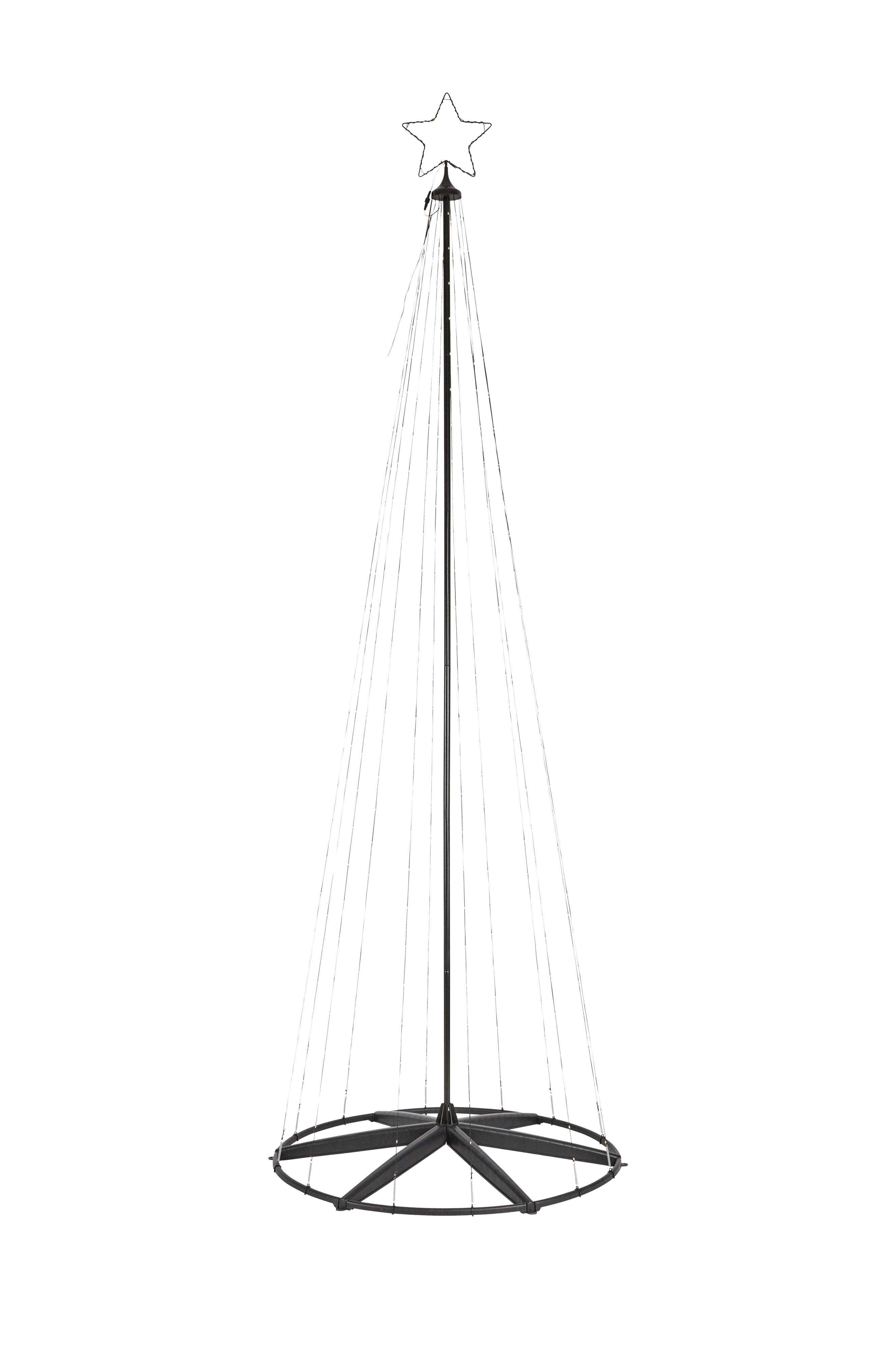Abeto joulukuusi Markslöjdiltä. 200 lämminsävyistä LED-valoa. 3 m korkea. IP44, hyväksytty ulkokäyttöön. 50 cm:n musta PC-kaapeli, jossa on muuntaja.