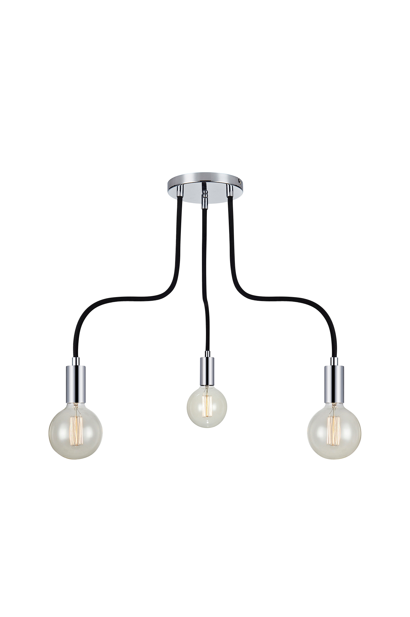Markslöjd Raw -kattovalaisin kromia ja mustaa metallia. Säädettävät varret. Kiinteä asennus kaariliitännällä. Iso lampunkanta E27. Enintään 60 W. Pituus 60 cm, leveys 55 cm, korkeus 58 cm.Ei sisällä kattopistoketta perustuen uuteen EU-direktiiviin. Tilaa erikseen.