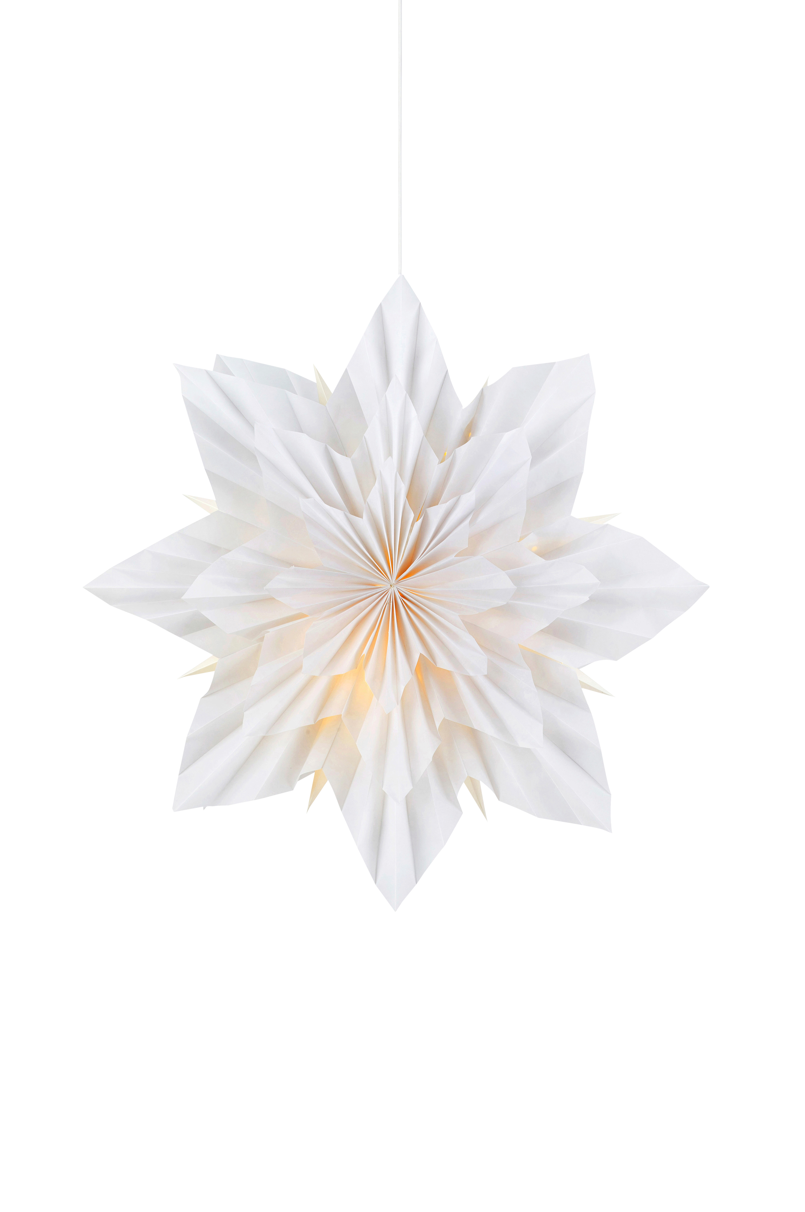 Riippuva Neela-paperitähti. 3,5 m:n muovijohto, jossa virtakytkin johdossa ja pistoke. Pieni lampunkanta (E14). Enintään 6 W:n lamppu tai vastaava LED-lamppu. Valonlähde ei sisälly toimitukseen.