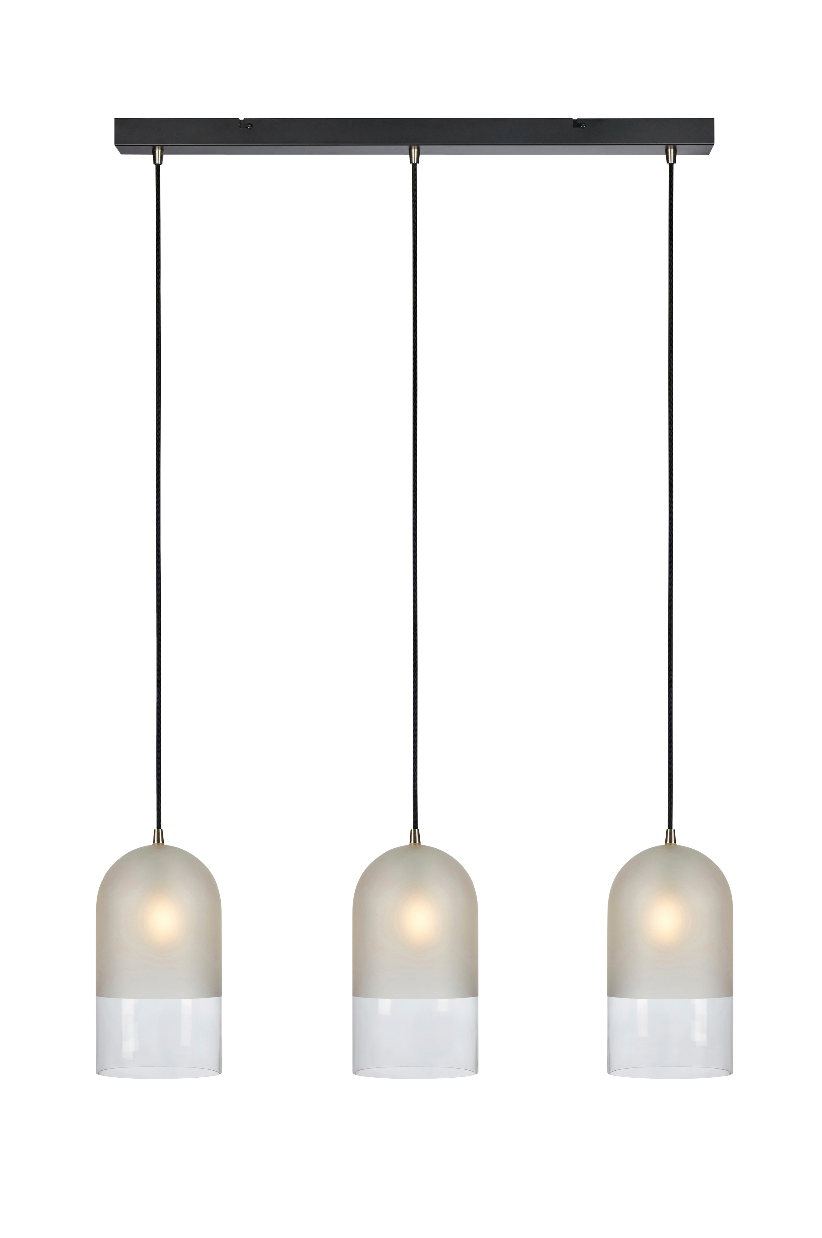 Cope-kattovalaisin, jossa kattokisko metallia ja varjostimet huurrettua ja kirkasta lasia. 1,5 metrin kangaspäällysteiset johdot. Asennetaan kattokiinnikkeen avulla. Kiinteä asennus. 3 x E14-lampunkanta. Enintään 18 W. Lamppu ei sisälly toimitukseen.