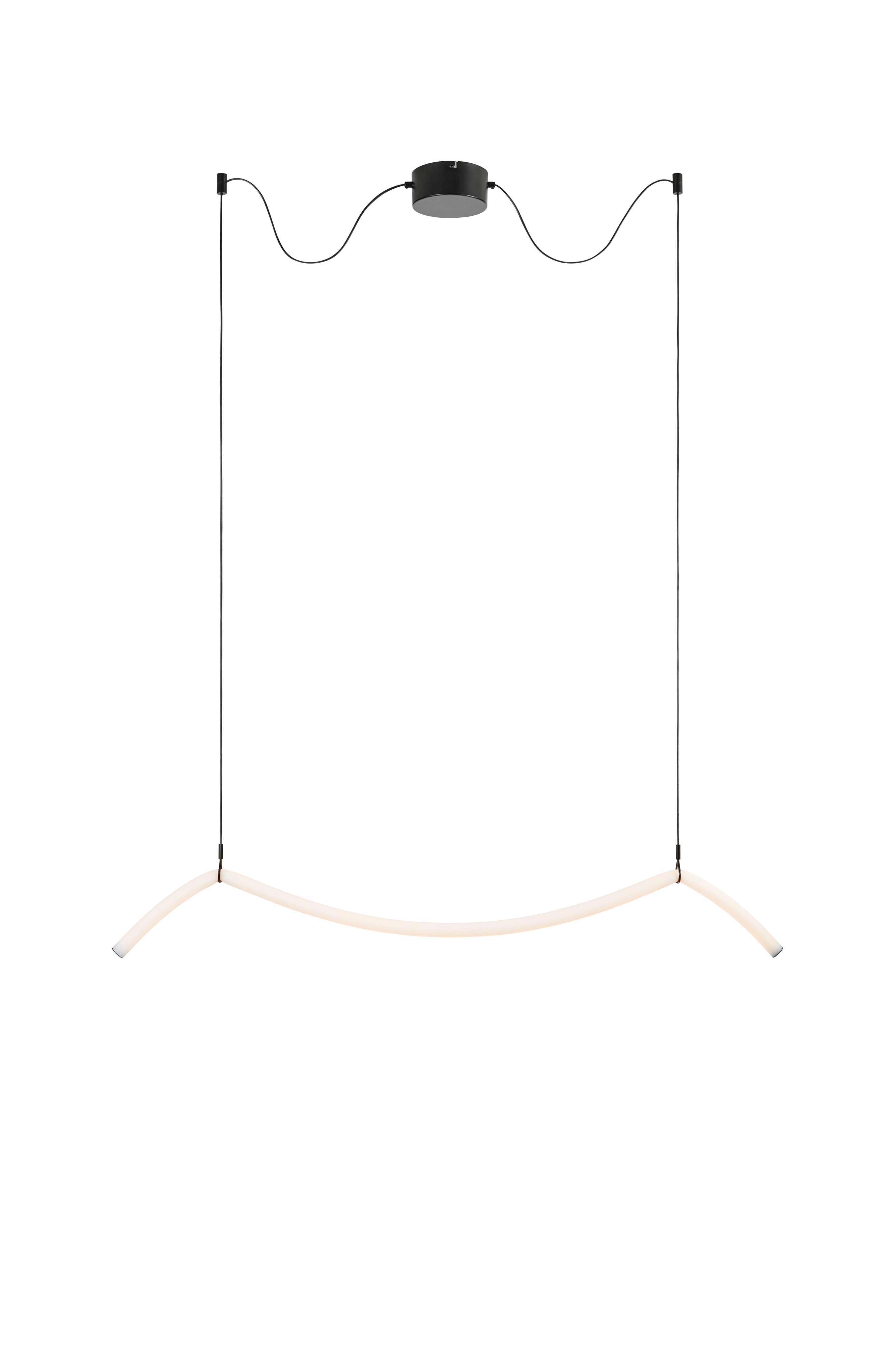 Melt markslöjdin riipus. Riippuvalaisin kiinteällä, himmennettävällä 13w led-valolla. 1260 lumenia, 3000k. 3,5m musta pvc-kaapeli. Leveys 112cm. Kiinteä asennus. Kannattimen ripustus.luokka i. Design catino.