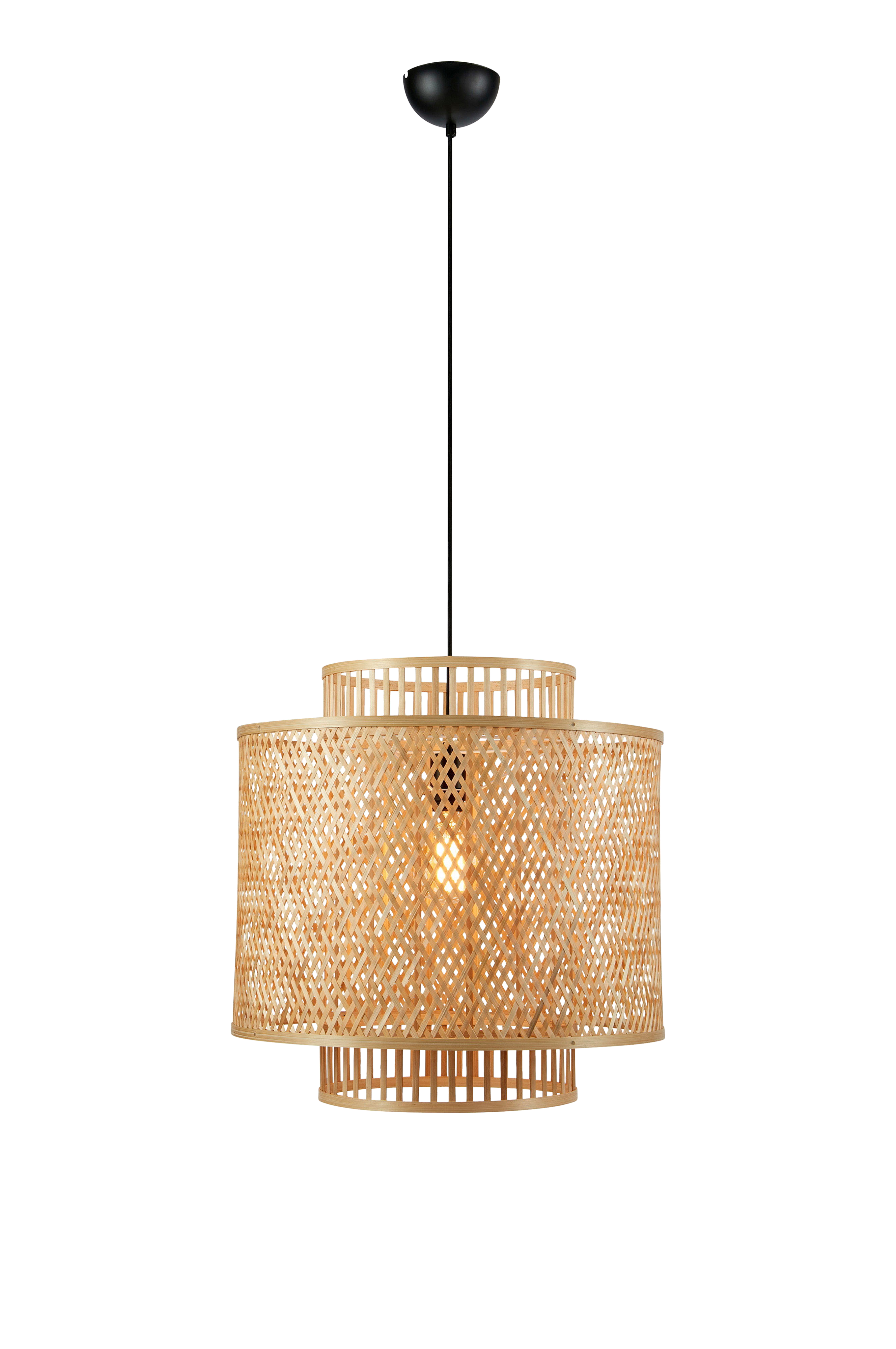 Markslöjdin Strati-riippuvalaisin. Runko metallia ja varjostin bambua. Halkaisija 50 cm. 1,5 metrin kangasjohto. Ripustuskoukku. Luokka 1 - maadoitettu. Suora kytkentä, seinäpistoke ei ole mukana. 1 x E27, enintään 40 W. Valonlähde ei sisälly toimitukseen.