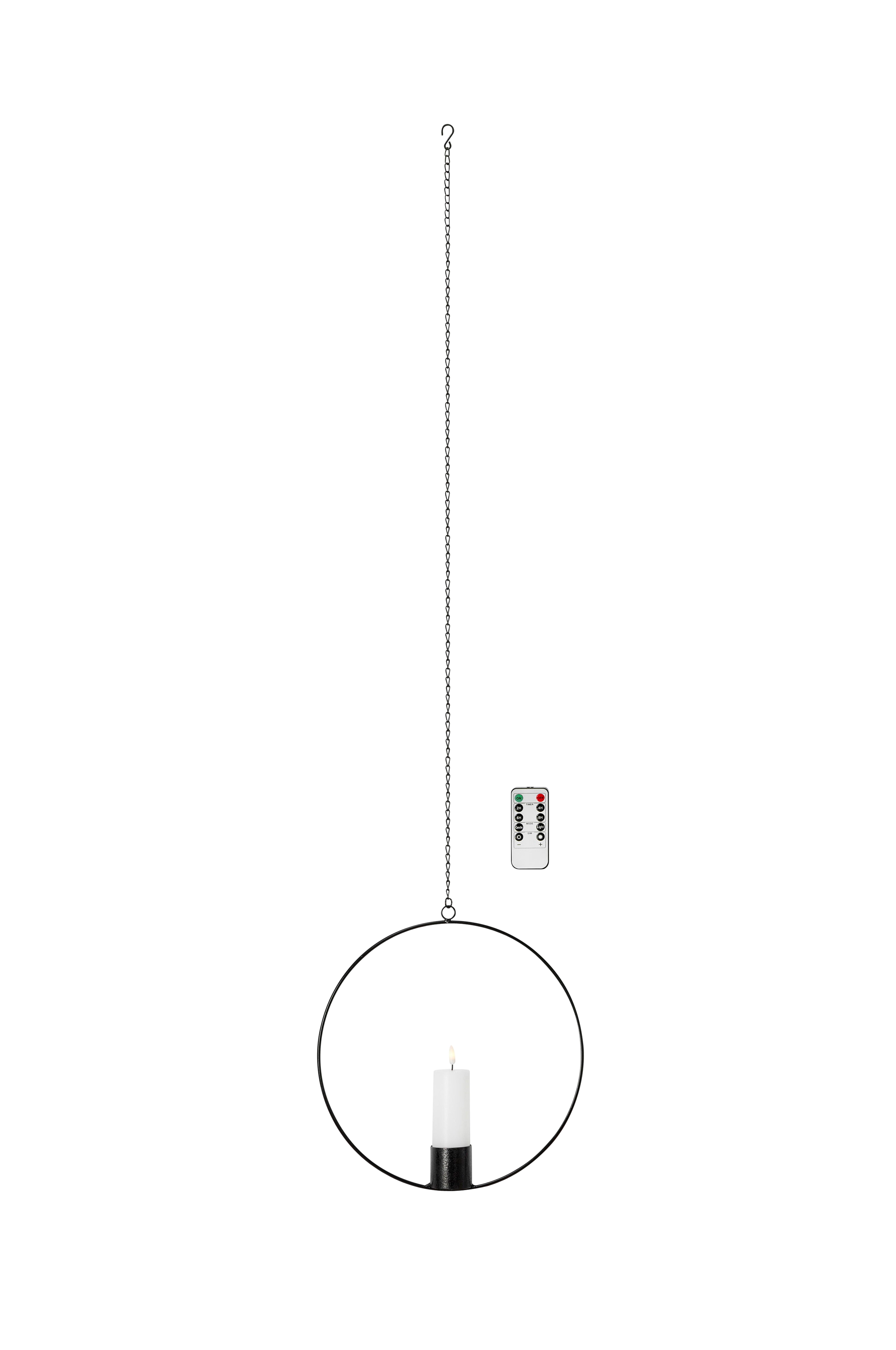 Anillo roikkuva koriste markslöjdiltä. Metallinen sormus ja 1,5 metrin metalliketju. Halkaisija 35cm. Mukana kauko-ohjattava led-kynttilä vahassa. 2,4,6 ja 8h ajastintoiminto. Säädettävä valoefekti, vakio tai liekki. Jatkuva valo 4 himmennettävällä portaalla. Korkeus 15cm. Kytkin valon alla. Toimii 2xaa paristoilla. Paristot eivät sisälly.