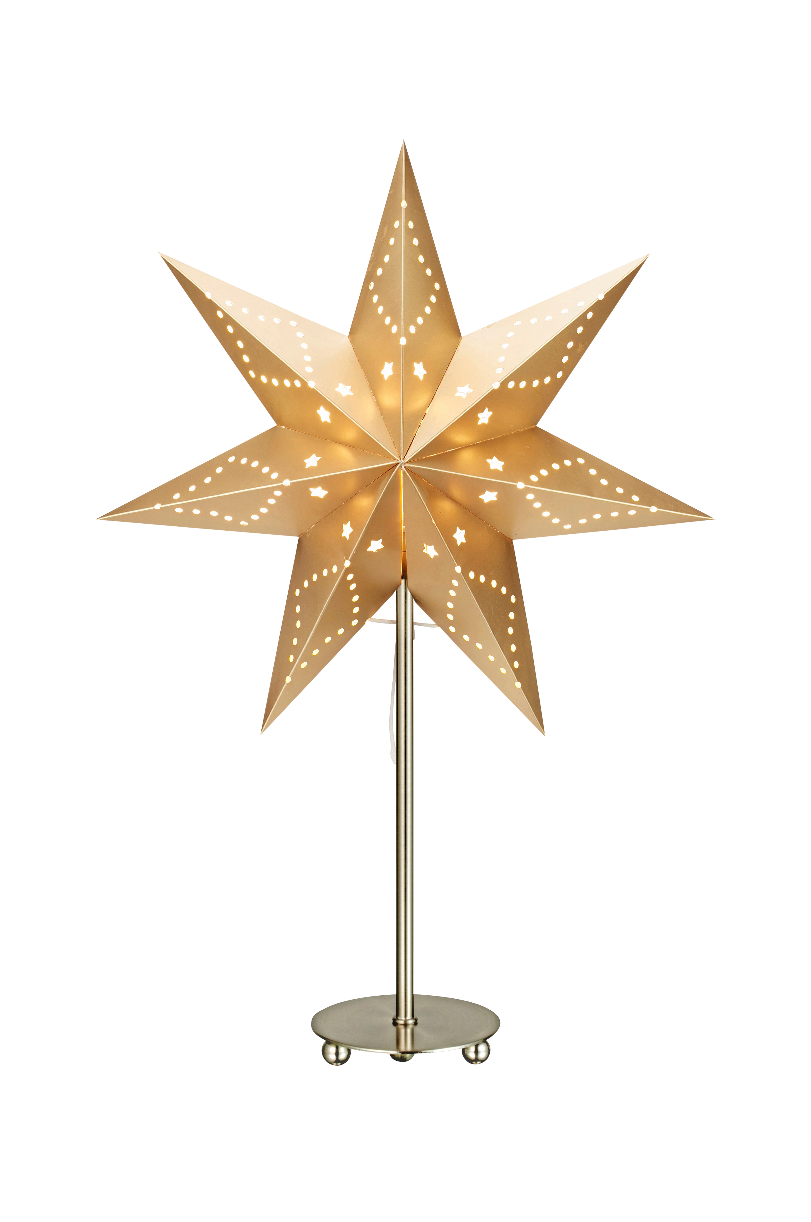 Markslöjd Saturnus -pöytätähti. Alusta metallia ja varjostin paperia. 1 x E14-lampunkanta. Enintään 25 W. 2 m:n muovijohto, jossa virtakytkin johdossa ja seinäpistoke. Valonlähde ei sisälly toimitukseen.