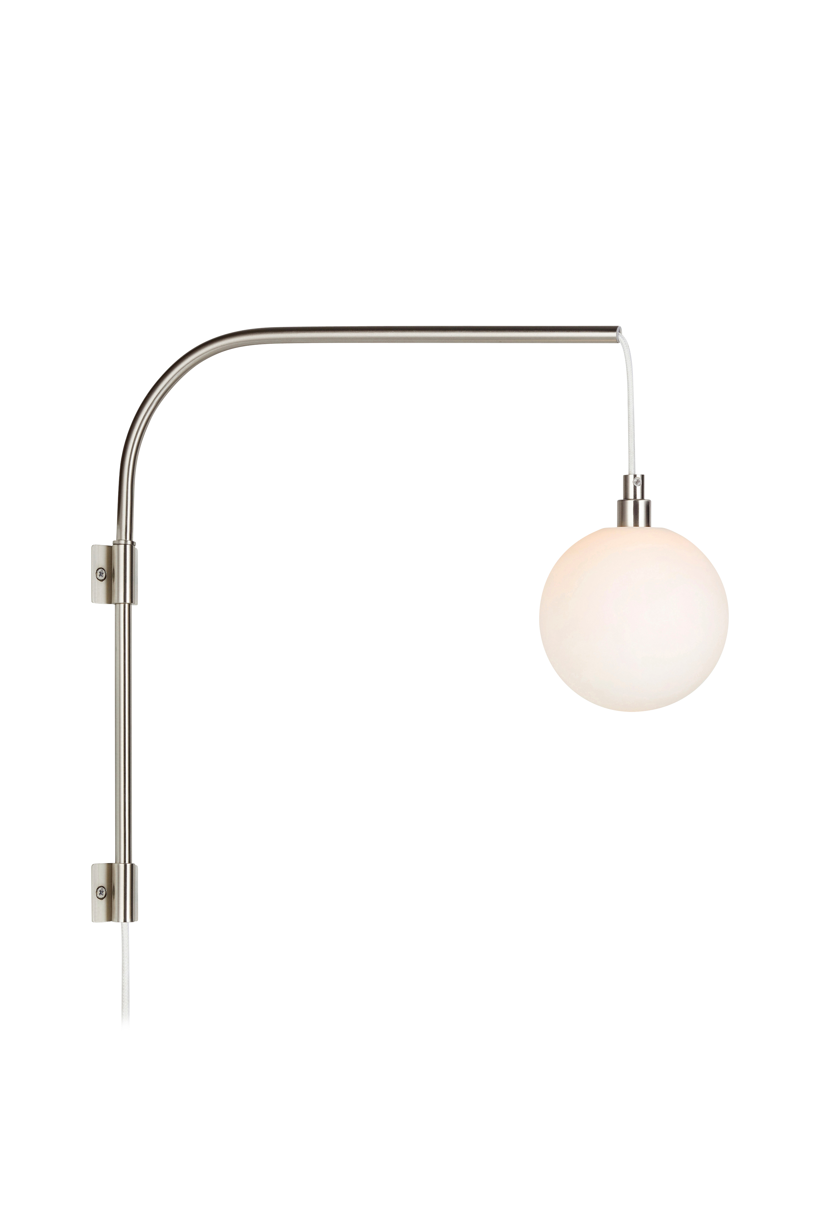 Seinävalaisin terästä. Varsi ja riippuva valkoinen lasikupu. 2 m:n johto, jossa virtakytkin. Enintään 1x18 W. G9-lampunkanta. Leveys 40 cm, korkeus 41 cm. Valonlähde ei sisälly toimitukseen.