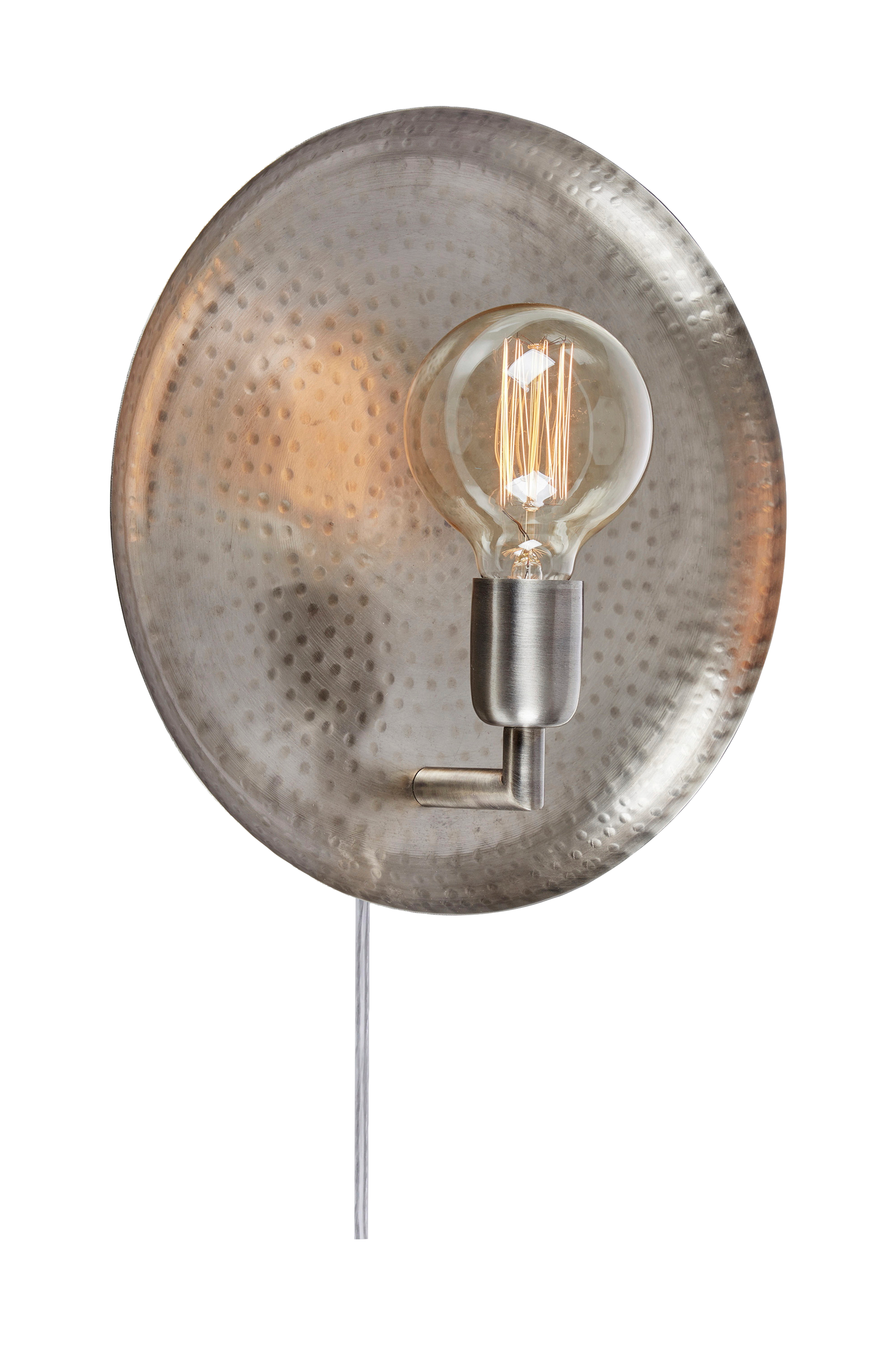 Dolium seinävalaisin markslöjdiltä. Vasaroitu tarjotin rautaa. 2,3 m läpinäkyvä pvc-kaapeli, jossa kytkettävä johto ja seinäpistoke. 1xe27, max 40w. Valonlähde ei sisälly.
