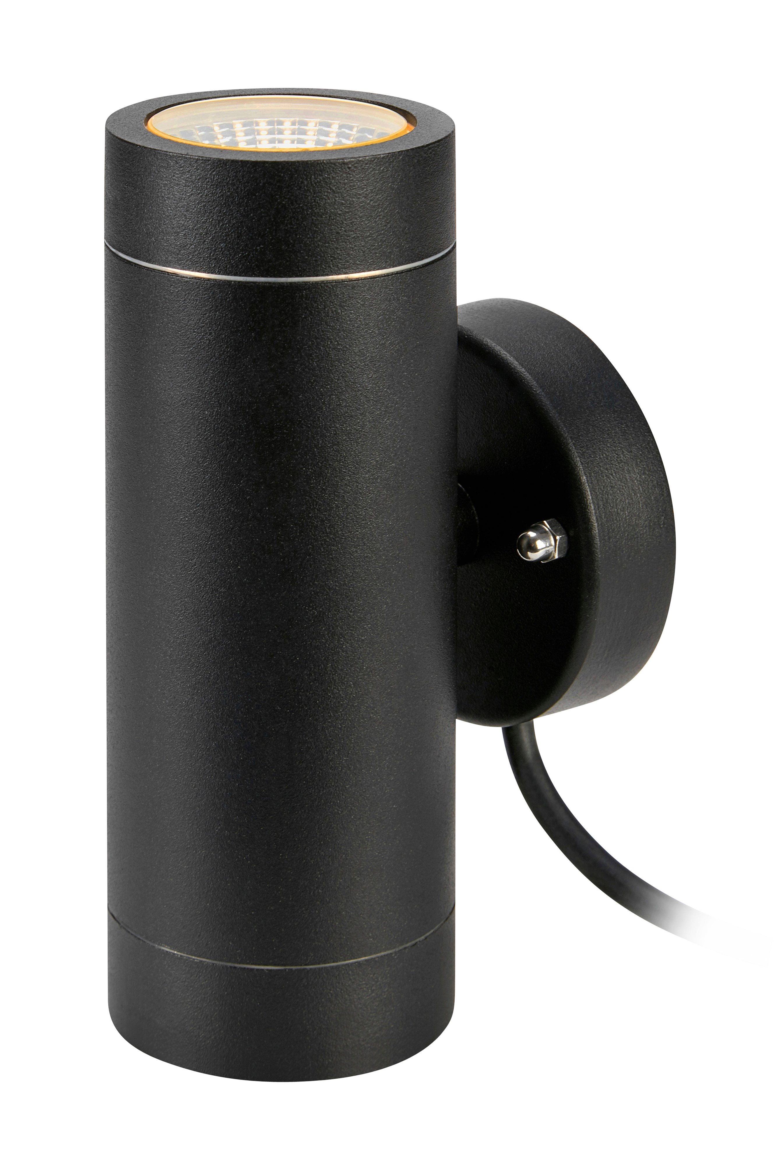 Ulkokäyttöön sopiva seinävalaisin antaa ihanan lämmintä valoa sekä alas- että ylöspäin. Valaisimessa on kiinteä LED 2 x 3 W. 3000 K lämpimän valkoinen valo, 300 lm. Valaisin soveltuu ulkokäyttöön, ja sillä on IP44-luokitus. Se on himmennettävä. 2 metrin virtajohto. Tähän tuotteeseen tarvitaan muuntaja, ei sisälly toimitukseen.