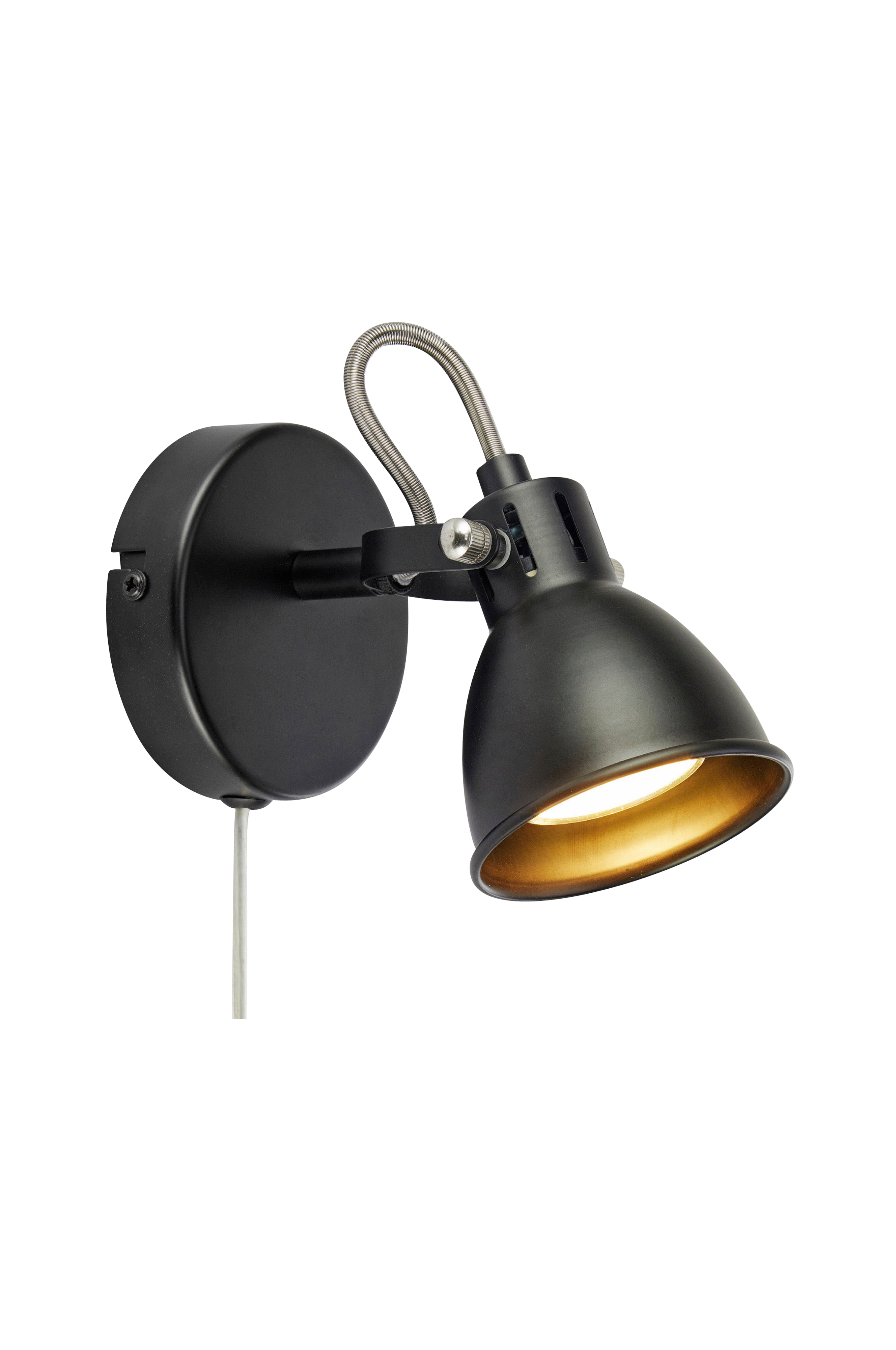 Mion seinävalaisin markslöjdiltä. Jalusta ja varjostin rautaa. Asennetaan seinäkiinnikkeellä. 2 metrin läpinäkyvä pvc-kaapeli, jossa kytkettävä johto ja seinäpistoke. Liitäntärasia seinälevyssä, helppo asentaa suoraan tulevaan sähköön. 1xgu10, max 7w. Valonlähde ei sisälly.