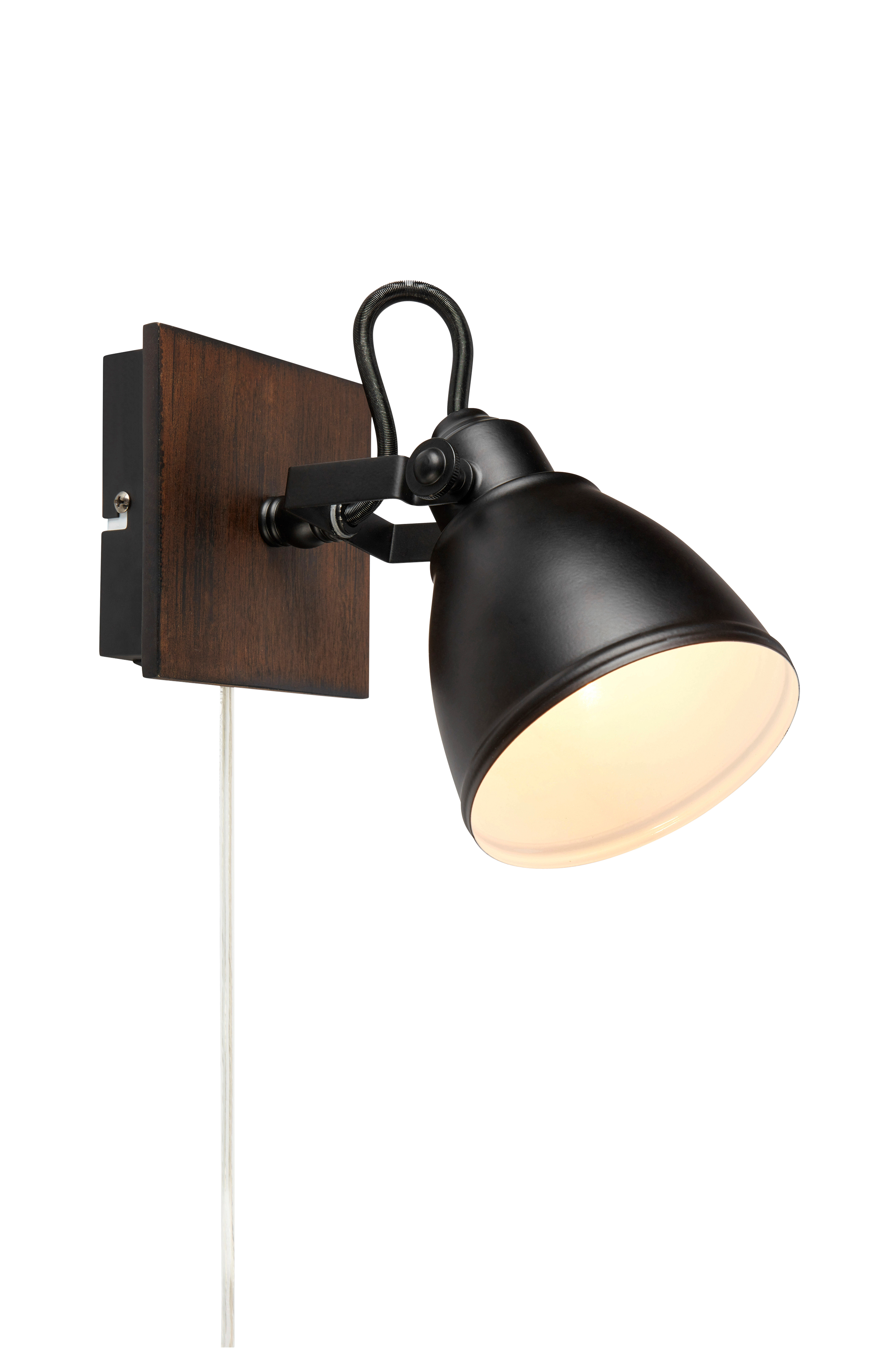 Nativa-seinävalaisin puuta ja metallia. Suunnattava varjostin. 2 metrin läpikuultava johto muovia. Seinäpistoke. Virtakytkin seinälevyssä. Asennetaan kiinnikkeen avulla. 1 x E14-lampunkanta. Enintään 18 W. Lamppu ei sisälly toimitukseen.