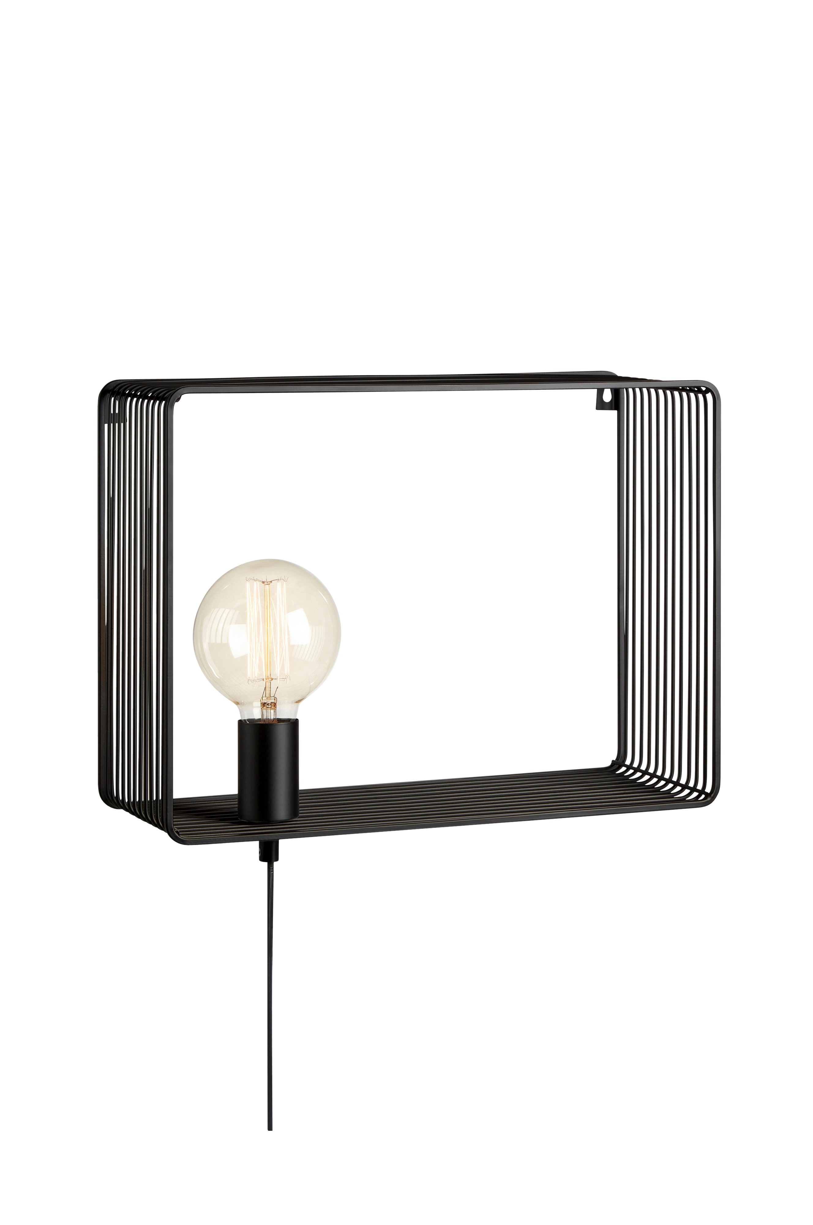 Markslöjd Shelf -seinävalaisin. Yhdistetty seinävalaisin ja metallihylly. Helppo asentaa ruuvin avulla. 2 m:n musta johto, jossa virtakytkin. Mitat: Leveys 38 cm, syvyys 15 cm ja korkeus 28 cm. Enintään 1x60 W. E27-lampunkanta. Valonlähde ei mukana. Himmennettävä.