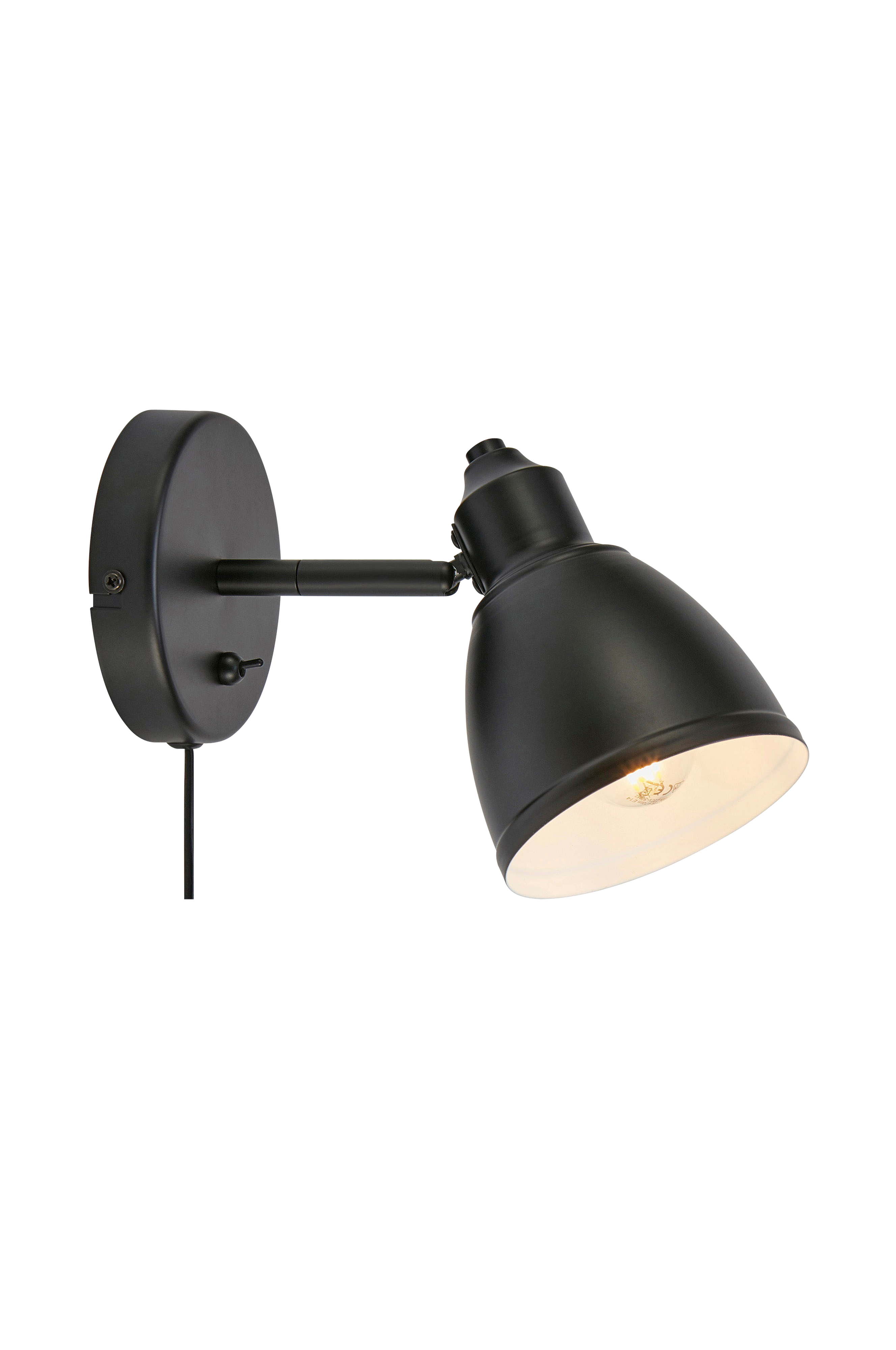 Markslöjdin Story-seinävalaisin. Jalka ja varjostin metallia. 2 metrin johto, jossa seinäpistoke. Virtakatkaisin seinälevyssä. Asennetaan kiinnikkeen avulla. 1 x E14, enintään 40 W. Valonlähde ei sisälly toimitukseen.