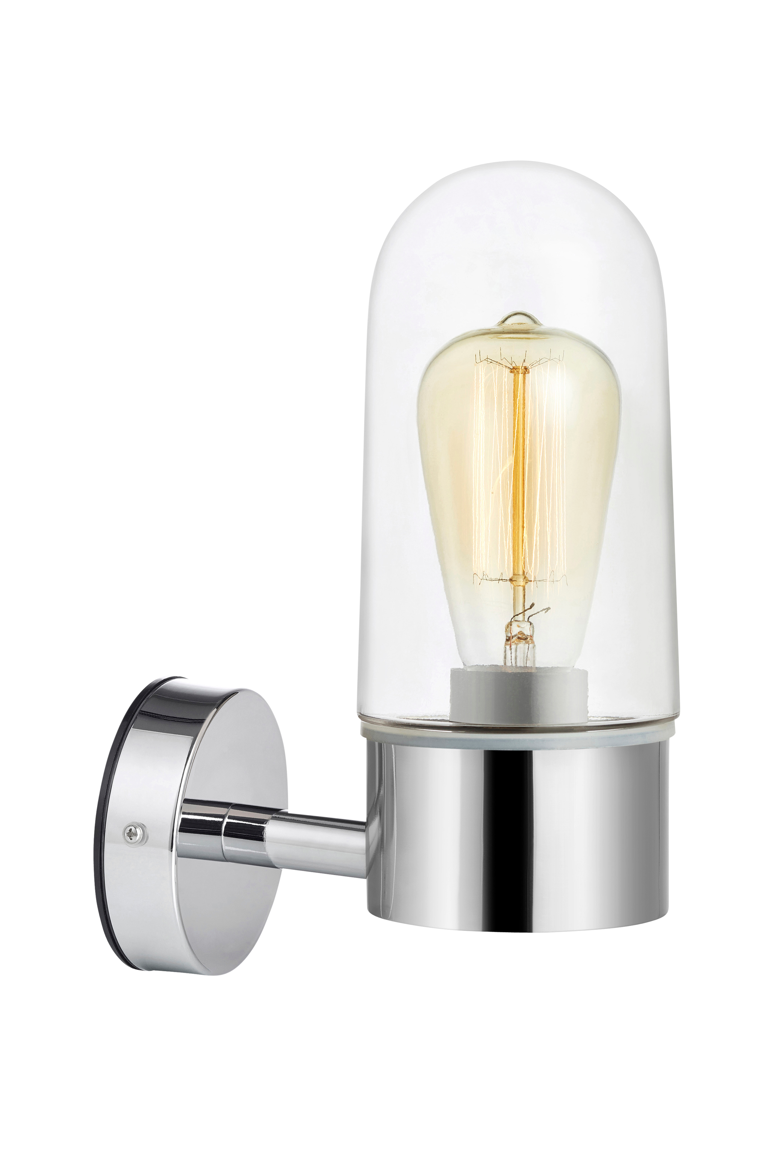 Markslöjd Zen -seinävalaisin. Kromivärinen kanta ja lasi. IP44. Hyväksytty kylpyhuoneeseen. Asennetaan kiinnikkeen avulla. Mitat: Leveys 10 cm, syvyys 17,5 cm ja korkeus 26 cm. Enintään 1x15 W. E27-lampunkanta. Valonlähde ei mukana. Himmennettävä.